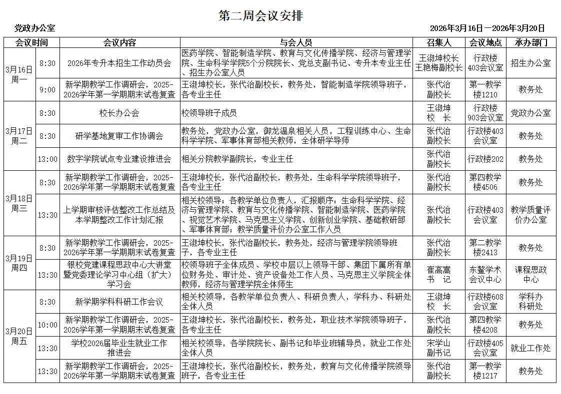 2025-2026学年第二学期第二周周表