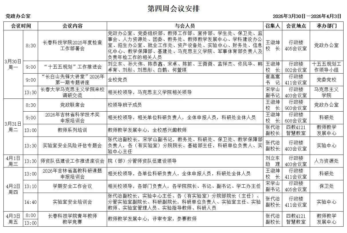 2025-2026学年第二学期第四周周表