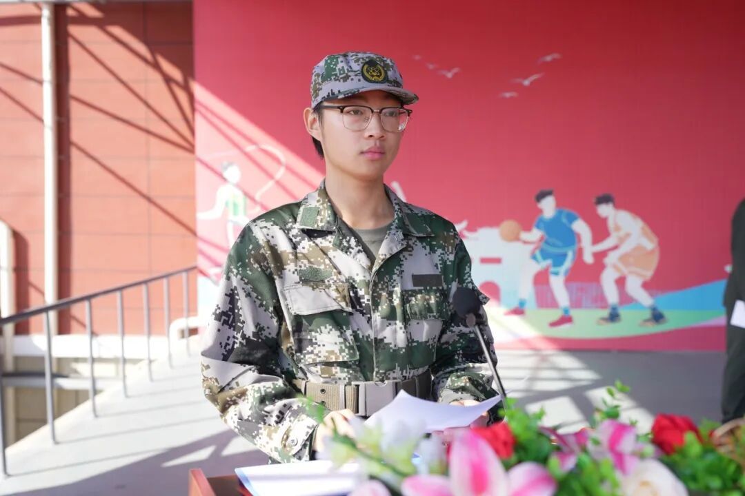 新生代表、医药学院2025级中医学5班周子越承诺,将坚决服从指挥、严格遵守纪律,以新时代青年的昂扬姿态和追梦人的豪迈气概,高标准、高质量完成军训任务。