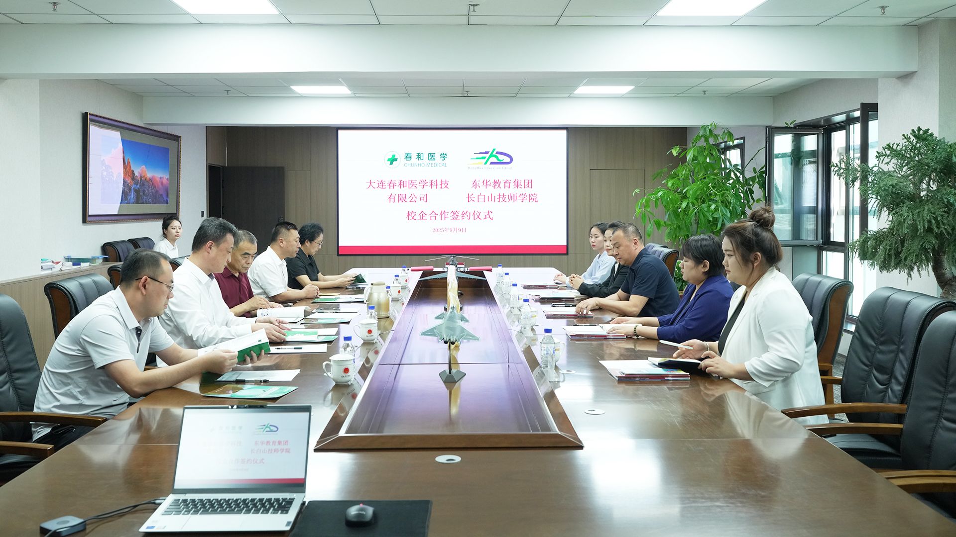 9月9日下午,东华教育集团与大连春和医学科技有限公司举行校企合作签约仪式。大连春和医学科技有限公司总经理周一、教学部主任张颖等一行五人,东华教育集团董事局主席、长春科技学院董事长张电达,长白山技师学院校长佟建业、书记崔锦刚,长春科技学院医药学院院长孙莹出席签约仪式,标志着双方在人才培养、资源共享领域的深度合作正式开启。