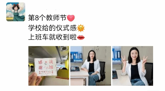 这份藏在班车上的“小惊喜”,是党政办公室践行服务初心、传递学校关怀的生动体现。从条幅装饰到贺卡准备,再到语音祝福,每一个细节都凝聚着对教师们的尊重与关爱,不仅为教师们的通勤路增添了仪式感,更让大家在节日当天收获了满满的幸福感。