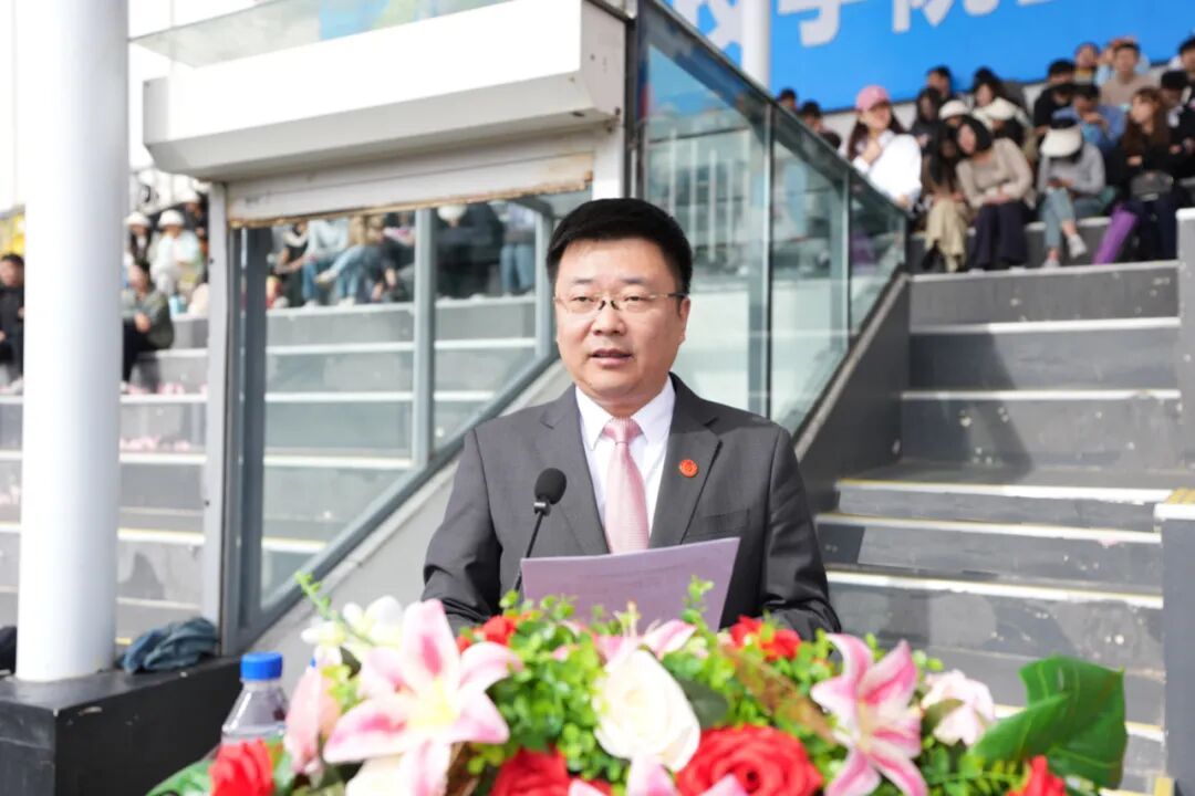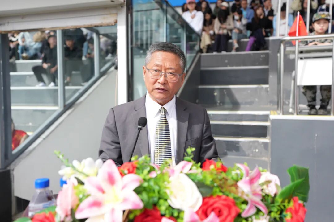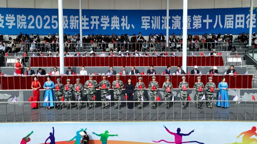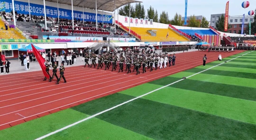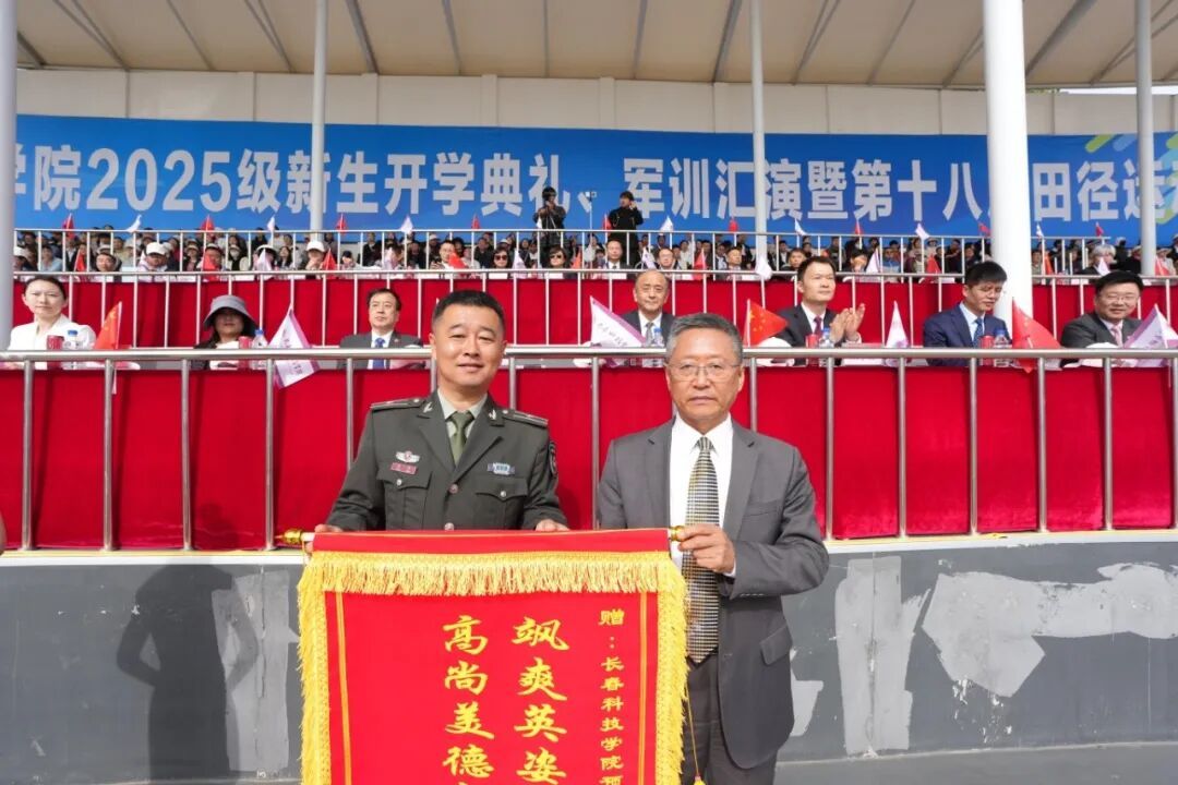 秋光潋滟,旌旗飞扬。2025年9月22日上午,长春科技学院在第一田径场举行2025级新生开学典礼、军训汇报表演暨第十八届田径运动会开幕式。校长栾立明等校领导、各教学单位及职能部门负责人、师生代表参加典礼。典礼由党政办公室主任陈恭鑫主持。