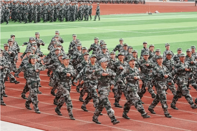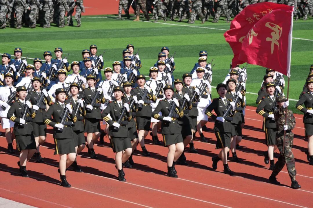 之后进行了2025级新生军训汇操与分列式表演。同学们步伐铿锵、队列整齐,意气风发、斗志昂扬,充分展现出军事训练的丰硕成果和新时代青年的昂扬风貌。