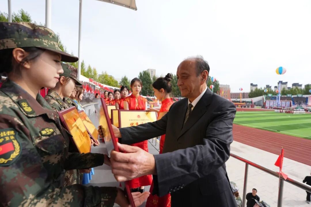 大会对军训中表现突出的集体与个人予以表彰。党委常委孙大伟宣读了《关于表彰军训团优秀连队和优秀指导员的决定》,学术委员会主任戚欣为优秀连队和优秀指导员代表颁奖。党委副书记高芳宣读了《关于表彰长春科技学院优秀预备役教官及国旗护卫队优秀旗手的决定》,党委副书记宋学山为获奖代表颁奖。校长助理刘立东宣读了《关于表彰军训团优秀训练标兵和优秀内务标兵的决定》,副校长高杰为标兵代表颁奖。