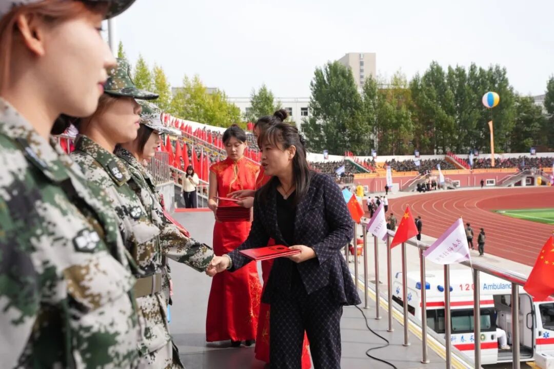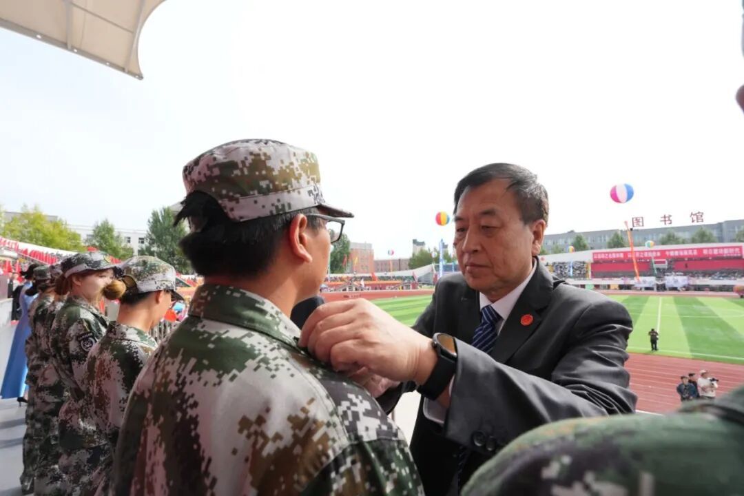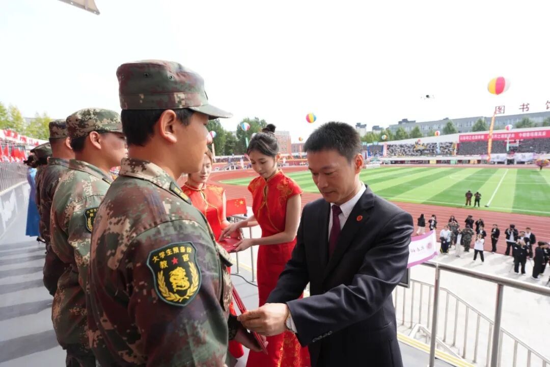 在庄重的仪式中,校长栾立明向预备役教官代表赠送锦旗,表达对他们辛勤付出的崇高敬意。党委副书记宋学山宣读了《关于授予长春科技学院大学生预备役士兵军衔的决定》,学术委员会主任戚欣与副校长张代治共同为预备役士兵代表授衔。