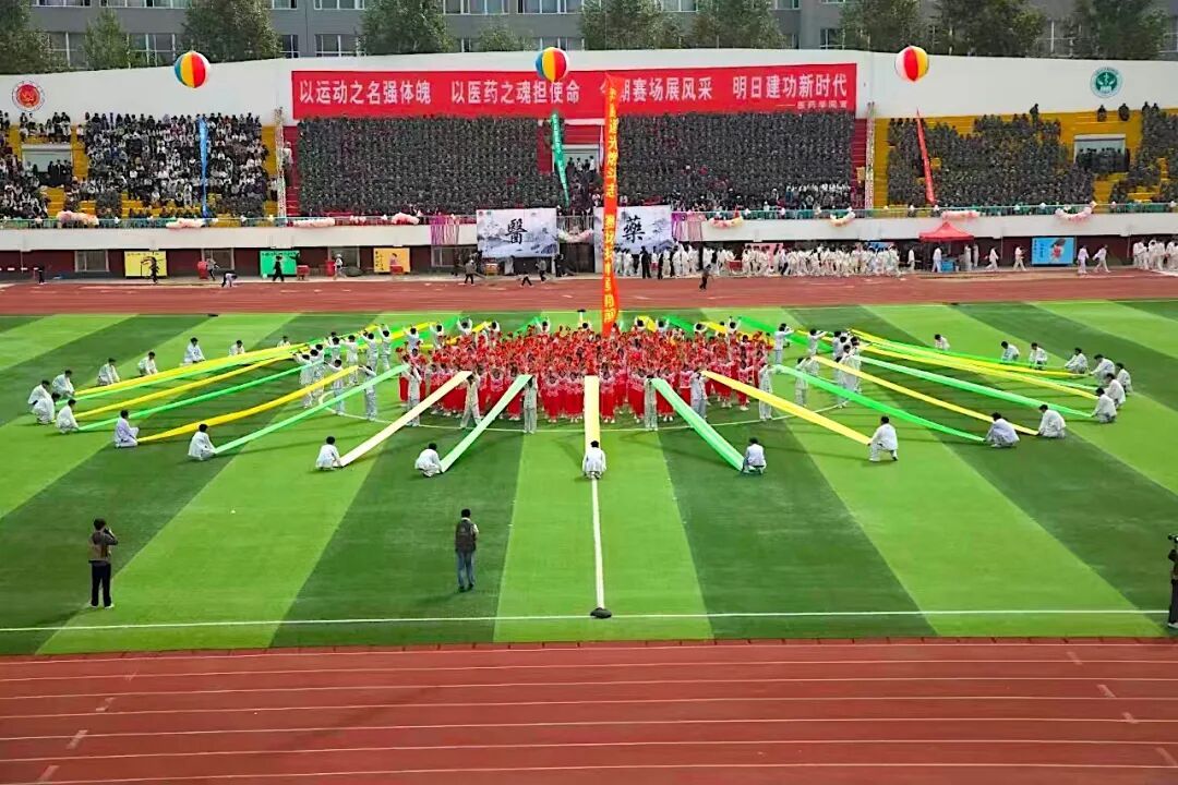 随着校长栾立明宣布第十八届田径运动会开幕,霎时彩烟腾空、气球高飞,《传承创新武文化,龙腾盛世绽芳华》太极双短兵表演和《匠心筑梦 礼赞华诞》团体操表演将开幕式推向高潮。运动会将有55个项目展开激烈角逐。