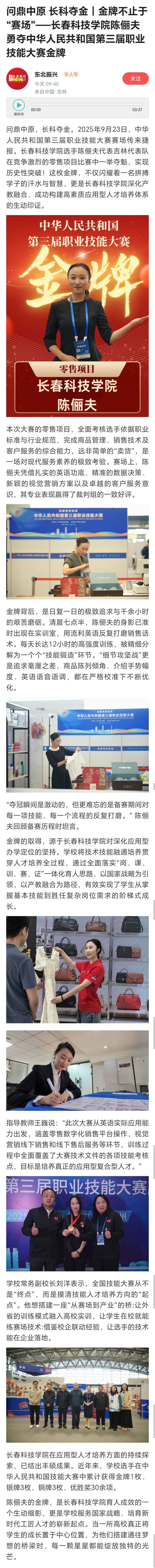 问鼎中原 长科夺金|金牌不止于“赛场”——长春科技学院陈俪夫勇夺中华人民共和国第三届职业技能大赛金牌