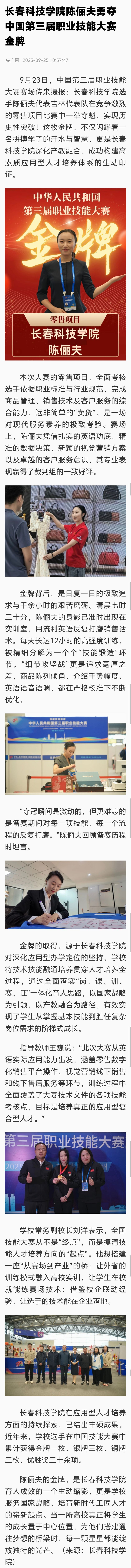 长春科技学院陈俪夫勇夺中国第三届职业技能大赛金牌