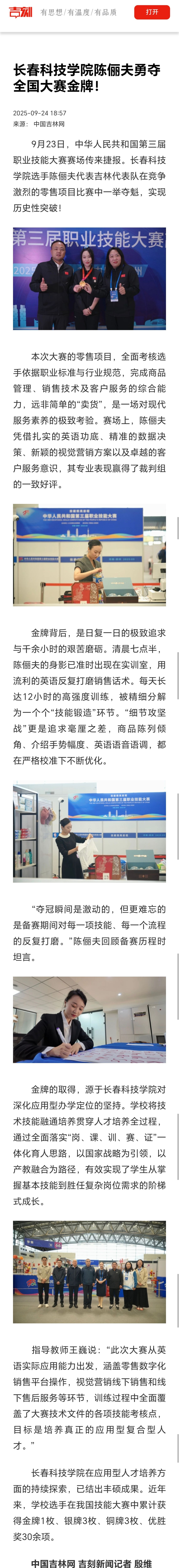 长春科技学院陈俪夫勇夺全国大赛金牌!