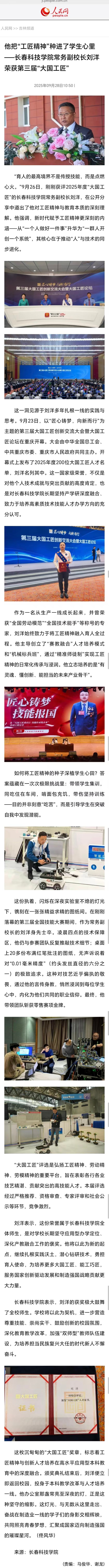 长春科技学院常务副校长刘洋荣获第三届“大国工匠”