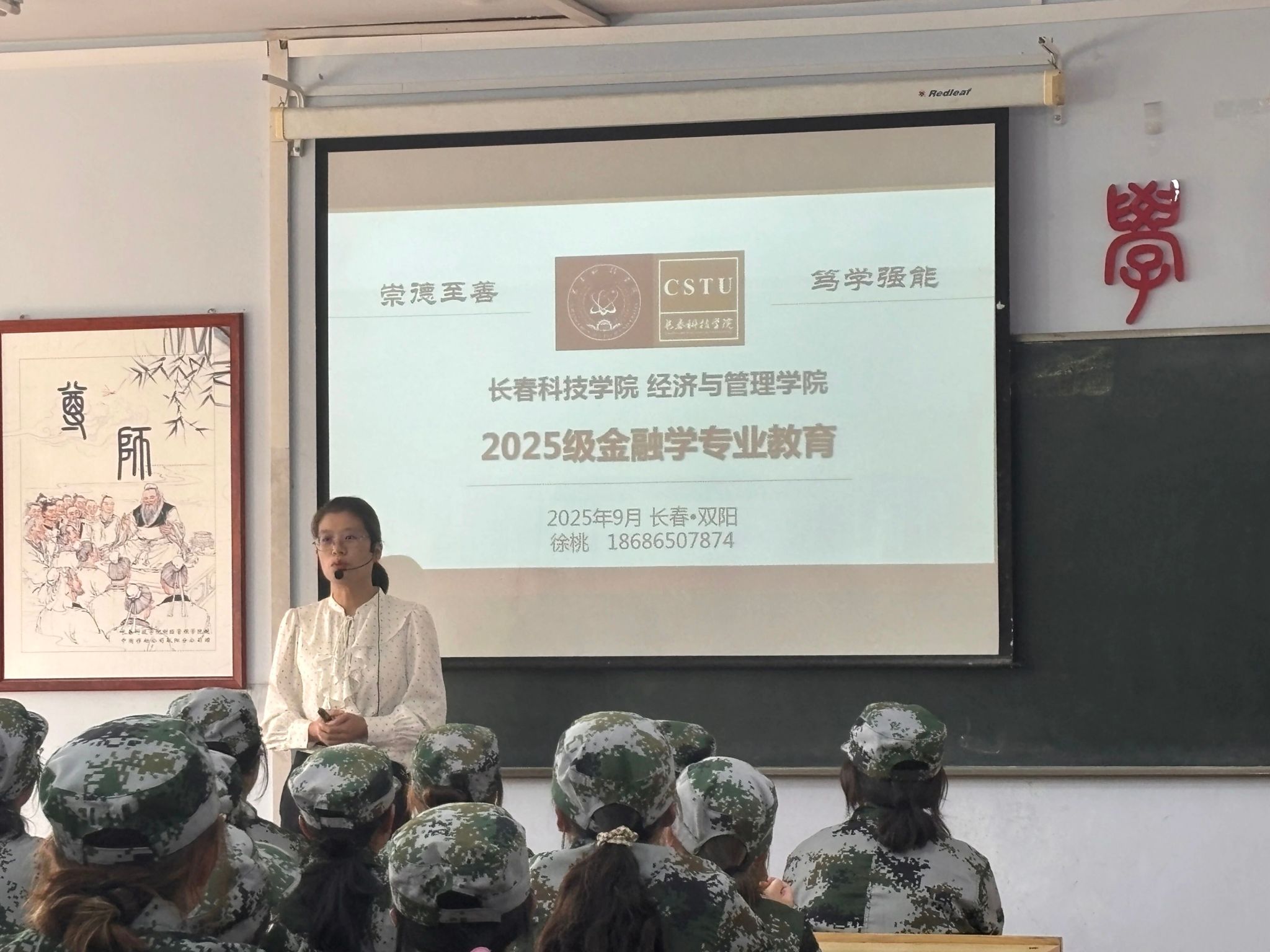 徐桃主任从学校整体办学概况切入,向新生介绍长春科技学院的基本信息、学科专业设置、师资结构、实验实训条件、科技创新成果与就业服务支持。随后,从“为什么学金融”“学什么”“如何学”三大核心问题出发,系统讲解2024版人才培养方案,强调专业定位为“学历教育与职业教育并重”,以“服务金融大行业、聚焦基层小岗位”为导向,构建分层分类的能力递进路径。