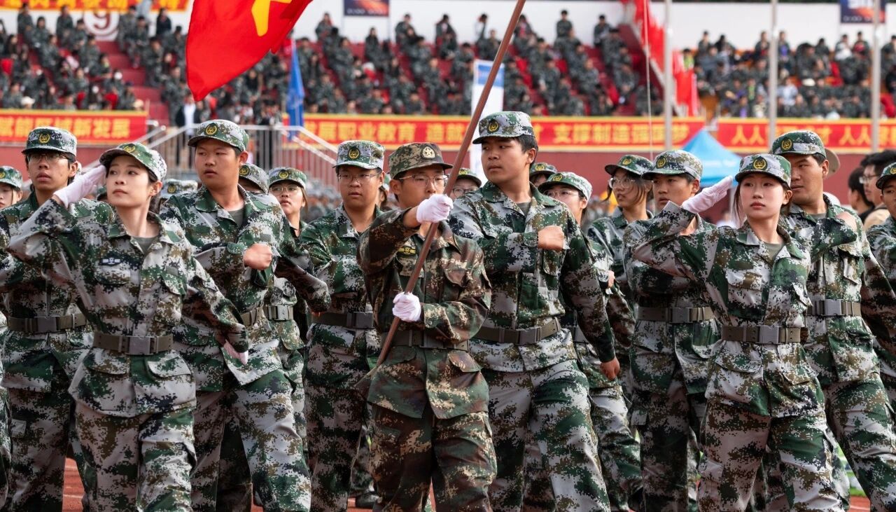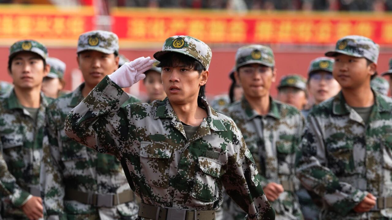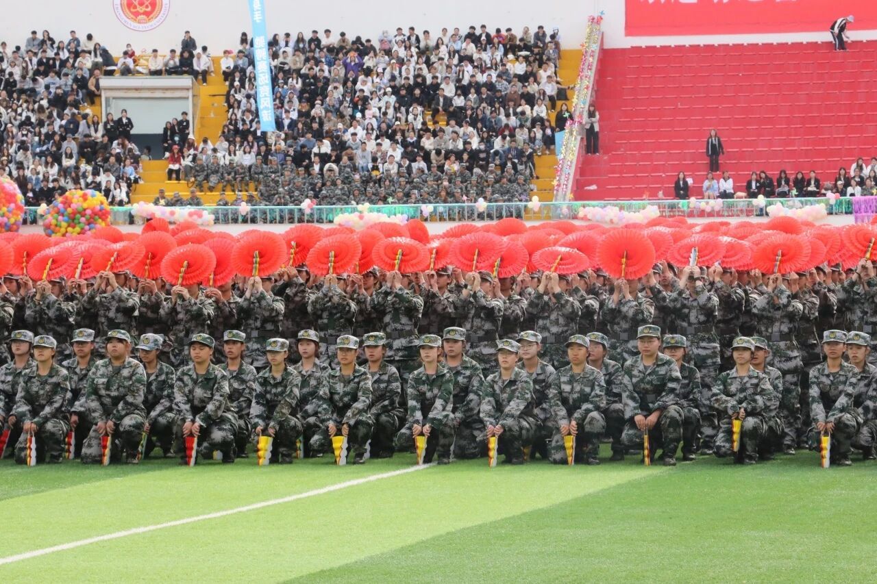 在团体操表演中,数百名身着统一军训服的同学们跑步入场,迅速在操场上集合。他们动作整齐划一,随着音乐变换队形。阳光下,他们的手臂挥动如波浪,步伐变换似潮水,每一个转身、每一次跳跃都精准无误。