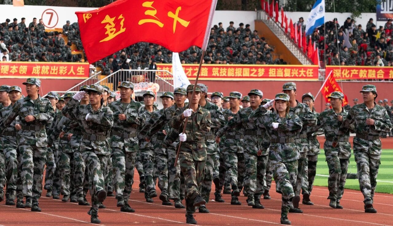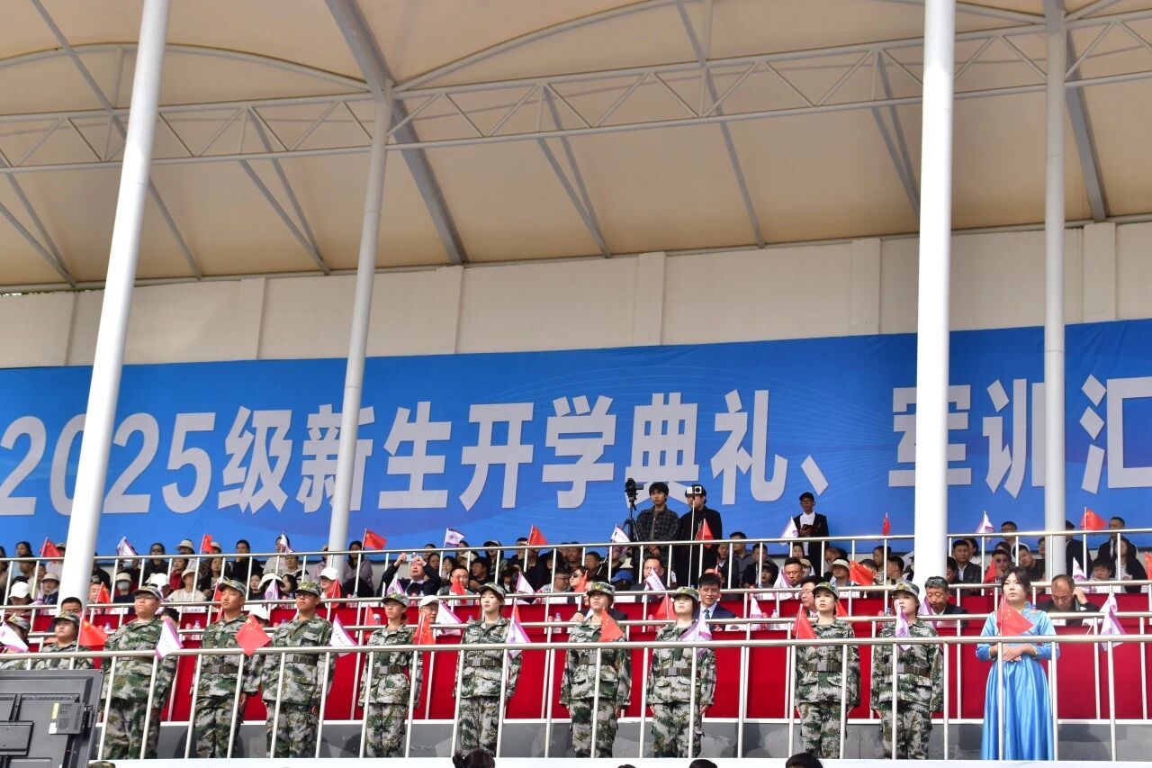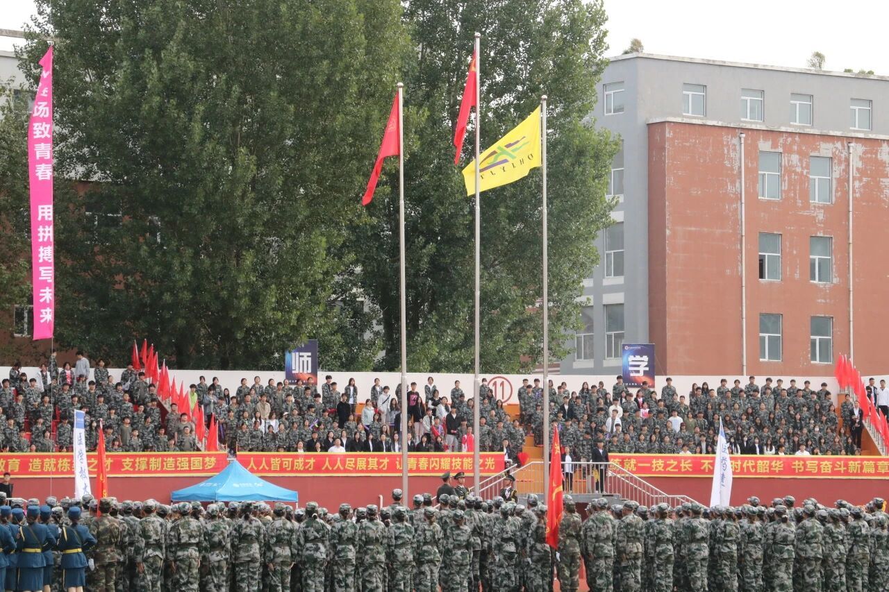 汇报表演在庄严的升国旗仪式中拉开帷幕。在激昂雄壮的国歌声中,鲜艳的国旗冉冉升起,迎风飘扬。同学们身着整齐的迷彩,身姿挺拔如松,目光坚定如炬,向国旗行注目礼。这一刻,对祖国的热爱与青春的豪情在每一位学子心中激荡,无声的誓言化作即将接受检阅的无穷力量。