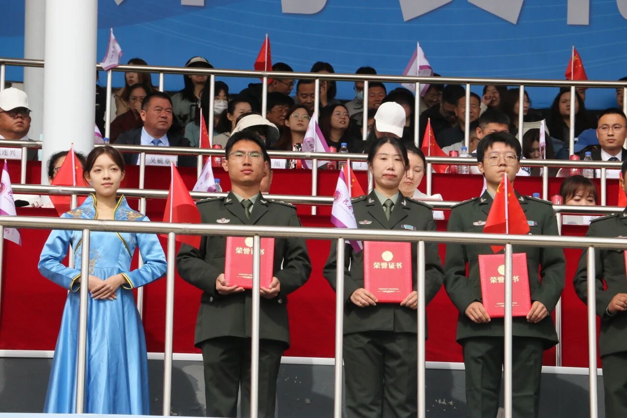 此次军训汇演中,我院十连、十二连以及十三连团体操连队表现优异,荣获“优秀连队”称号。