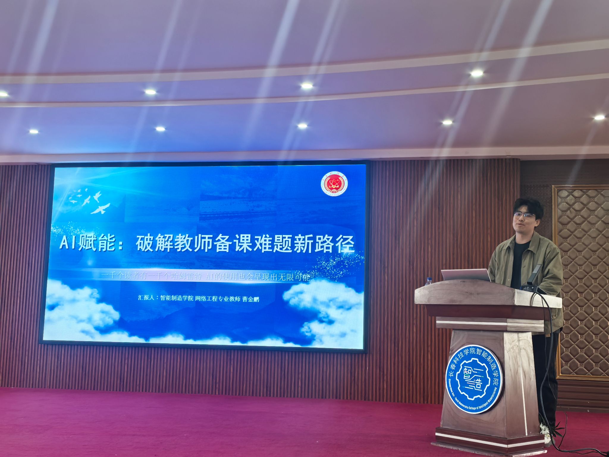本次培训由智能制造学院网络工程专业教师曹金鹏担任主讲。曹老师以《Python程序与设计》课程为例,围绕“AI如何破解教师备课难题”这一主题,系统展示了人工智能在教学准备各环节中的实际应用路径。