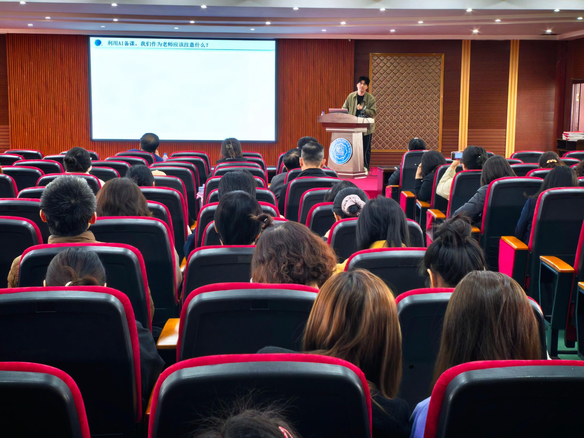 为深入推进教育教学信息化建设,提升教师数字素养与智能教学工具应用能力,4月9日中午12:30,由教师教学发展中心主办的信息化建设专题培训——《AI赋能备课:破解教师备课难题新路径》在第一教学楼六楼报告厅顺利举行。本次活动面向全校无课教师开放,吸引了众多教师踊跃参与。