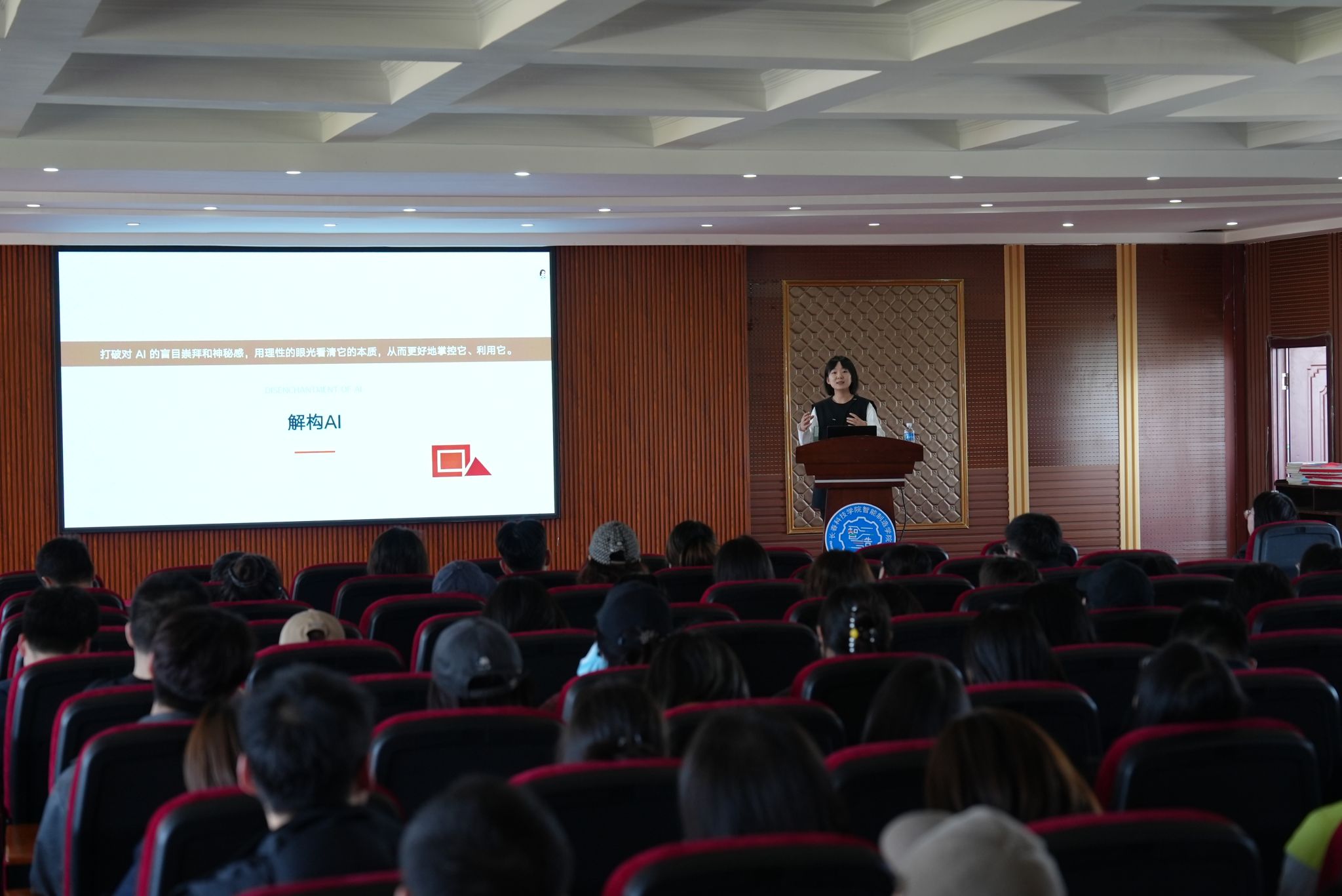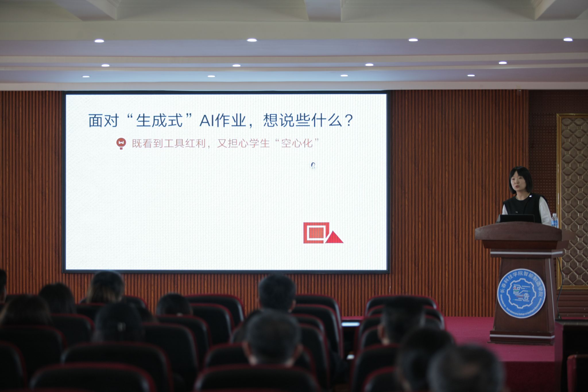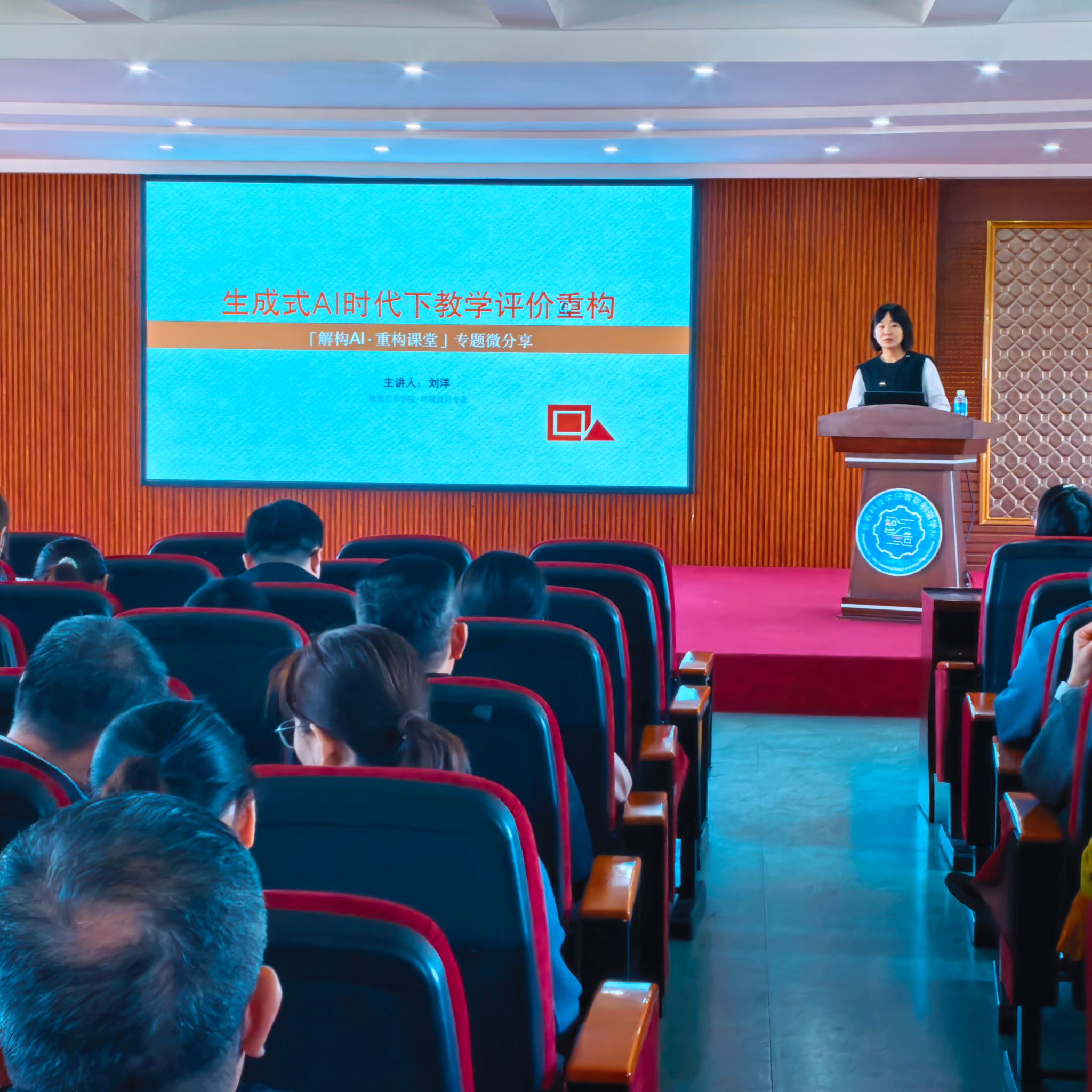刘洋主任以“看见冰山之下”为切入点,直指当前生成式AI普及背景下,部分作业呈现“表面完美、内核空心”的现象——毕业论文辞藻华丽却无实质观点、艺术作品画面精美却缺失个人思考、设计作业依赖AI生成却不懂底层逻辑,深刻揭示了学术空心化危机,引发在场教师强烈共鸣。