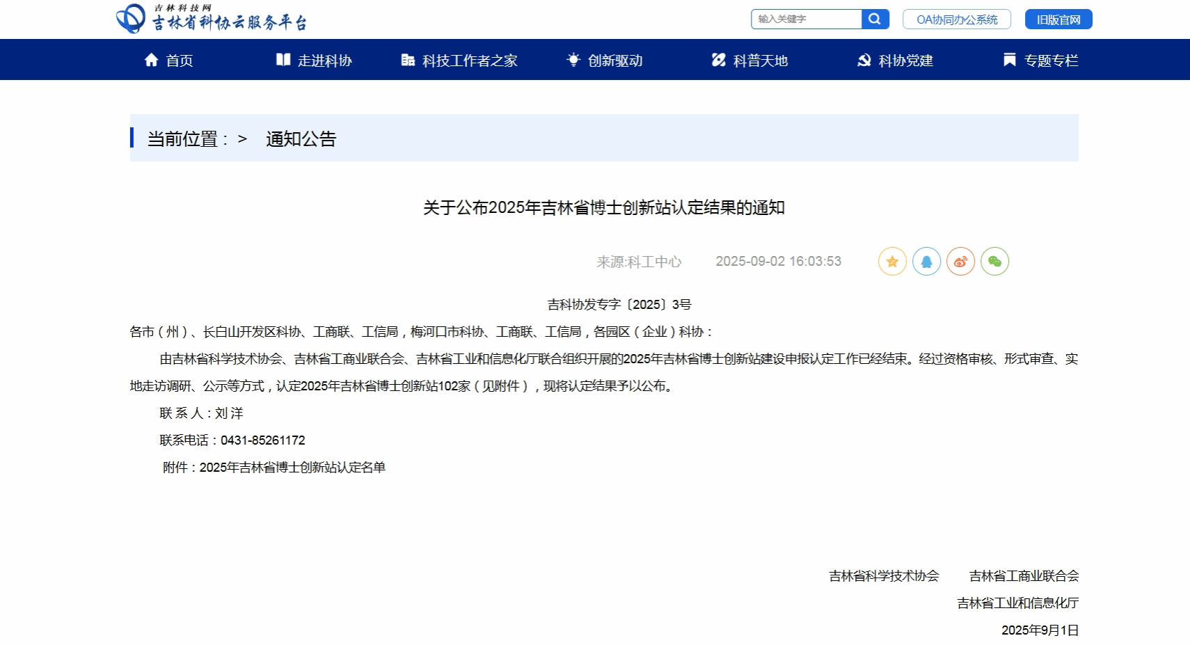 近日,由吉林省科学技术协会、吉林省工商业联合会、吉林省工业和信息化厅联合组织开展的2025年吉林省博士创新站建设申报认定工作圆满结束。经过资格审核、形式审查、实地走访调研、公示等方式,长春科技学院共有5家博士创新站顺利通过认定。