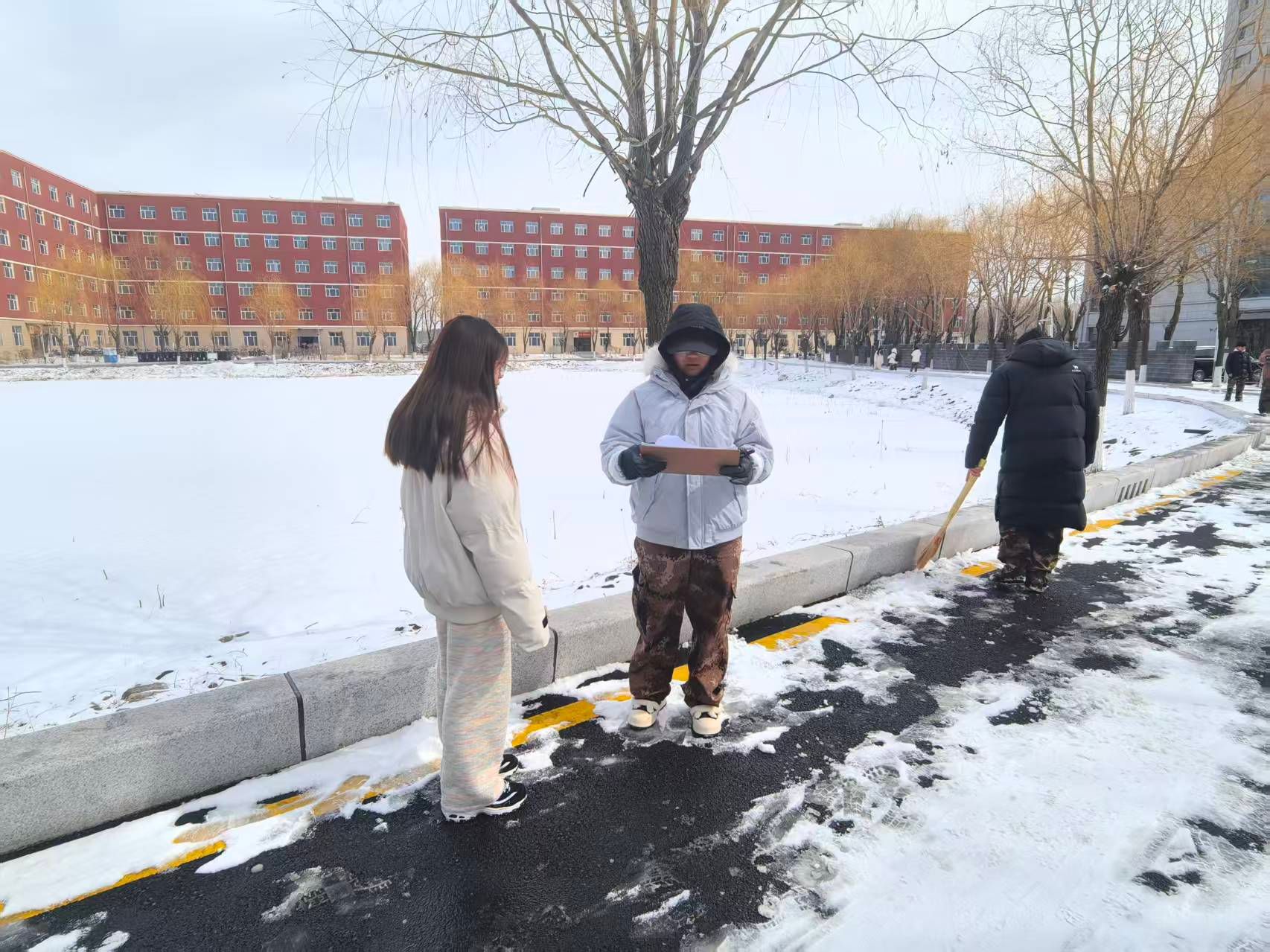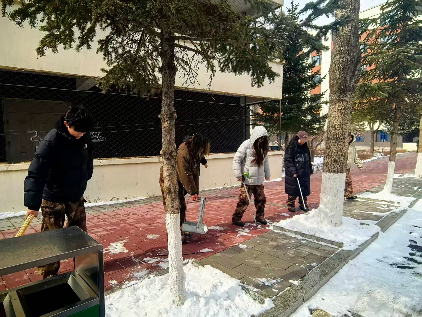 实践过程中,在姜涛老师的统筹引导下,同学们热情饱满、全身心投入到实践活动中。由学生干部指导,大家携带清扫工具,细致开展校园环境美化工作:认真清理校园道路死角、绿化带杂物,充分发挥专业审美优势,对校园景观绿植进行规整修剪,对公共区域设施进行清洁养护,用双手为校园“焕新添彩”。