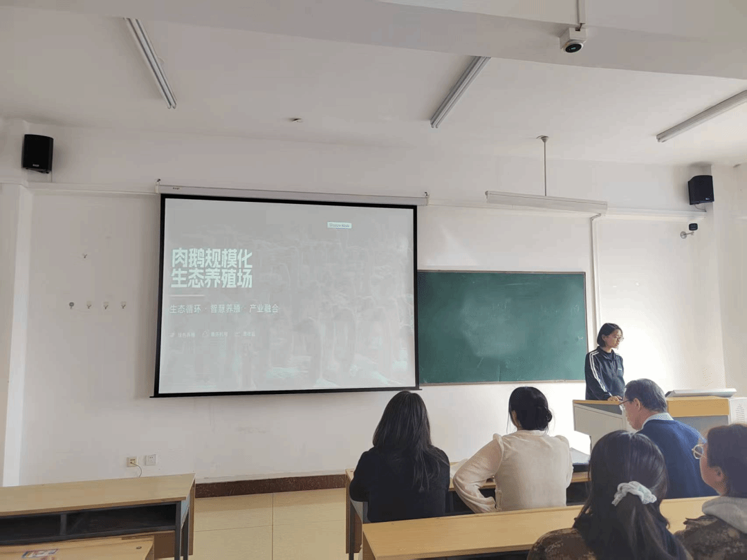 自课程启动以来,学生以组为单位开展线上线下双线实训:线上完成可行性计划书、养殖场平面图绘制及路演视频制作,线下深入生产一线参与动物饲养,教师根据学生饲养动物的差异提供一对一专业指导。汇报现场,各小组通过现场演示、方案讲解等形式,逐一展示生态畜牧场项目策划方案,分享实训中遇到的技术难题与解决思路,以及参与动物饲养的实操心得。老师们针对各小组的方案设计、数据支撑、实操细节等方面进行点评与提问,提出优化建议,助力学生进一步完善项目方案。