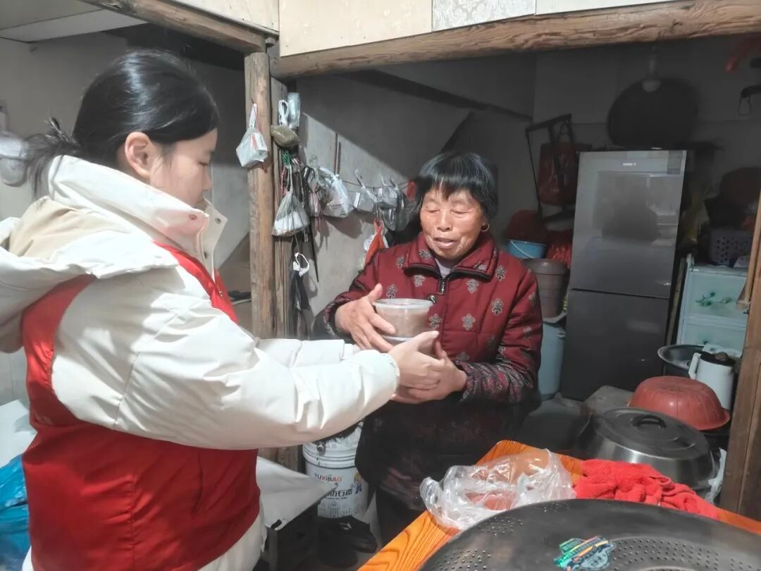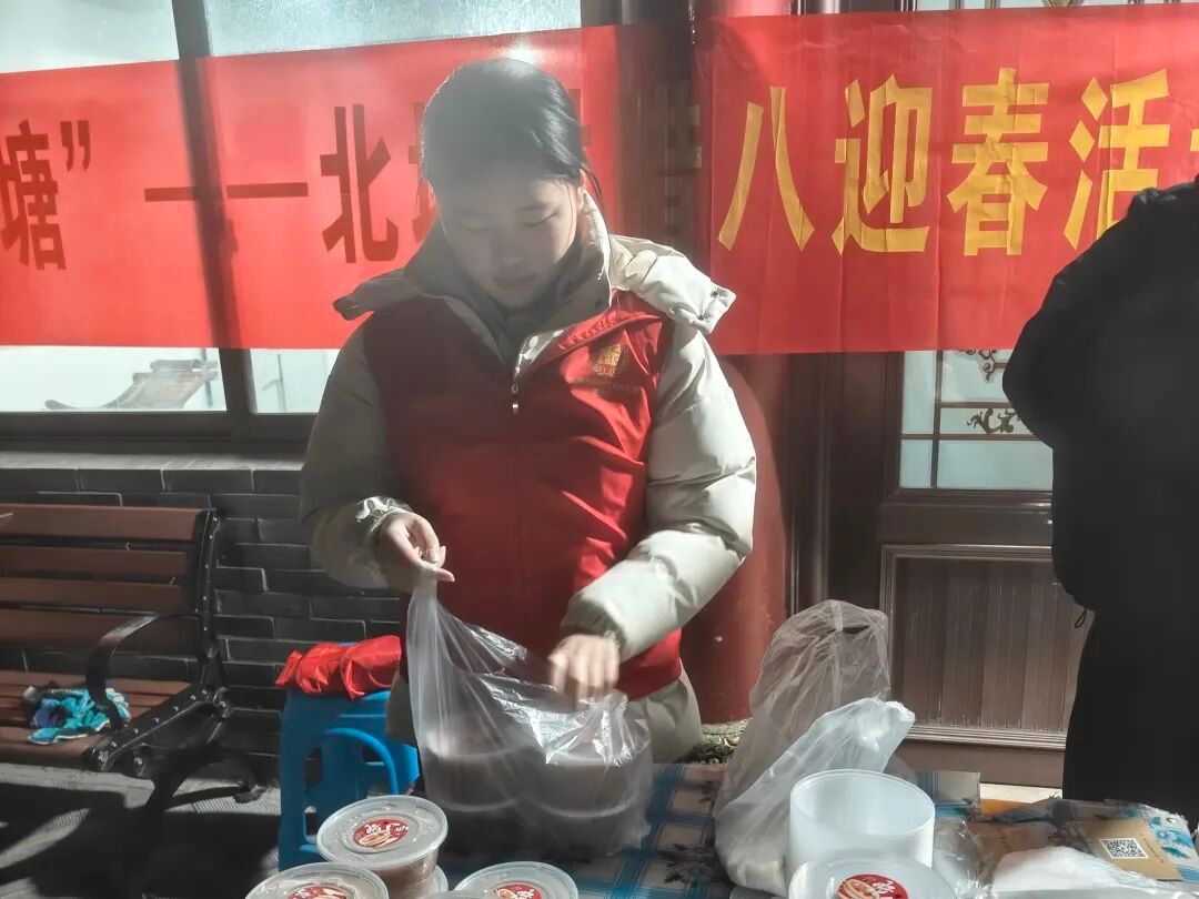 活动期间,我协同伙伴走访北塘村村委会与村中老者,聆听腊八民俗渊源,探寻当地腊八粥的传统配方,以严谨之心守护每一份食材的本真与洁净。熬制环节,我守在灶台旁,文火慢炖、悉心搅拌,让食材的醇香充分交融,让每一碗腊八粥都软糯绵长。粥品成后,我参与派送与现场服务,手提暖粥,踏遍北塘村的街巷,轻递热粥、细致问候,传递岁月温情。