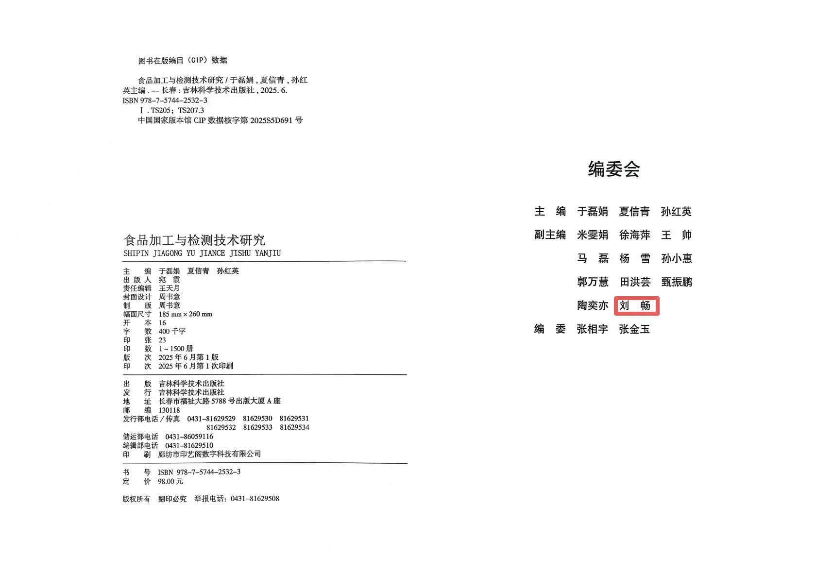 学院教师深耕科研,成果丰硕,尽显扎实学术底蕴与核心创新力。李国江教授、唐玉娇教授、尤丽新教授等8位核心骨干,以第一通讯作者或共同通讯作者身份发表高质量SCI论文15篇,彰显学术影响力。唐玉娇教授与刘畅老师合著专著2部,杨添泽老师获批软件著作权2项,实现理论与应用创新双赢。冯印老师作为核心成员(第五完成人)斩获吉林省科技进步奖一等奖,印证成果转化价值,全方位彰显学院过硬科研实力。
