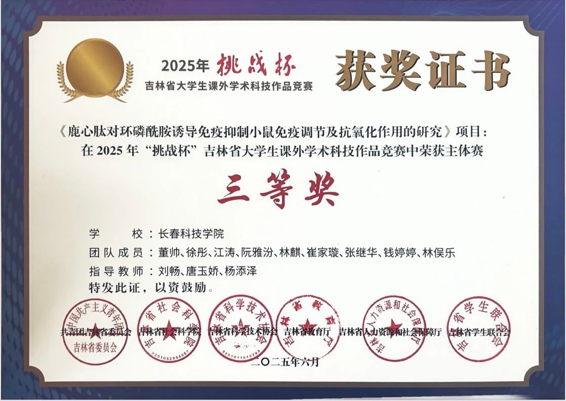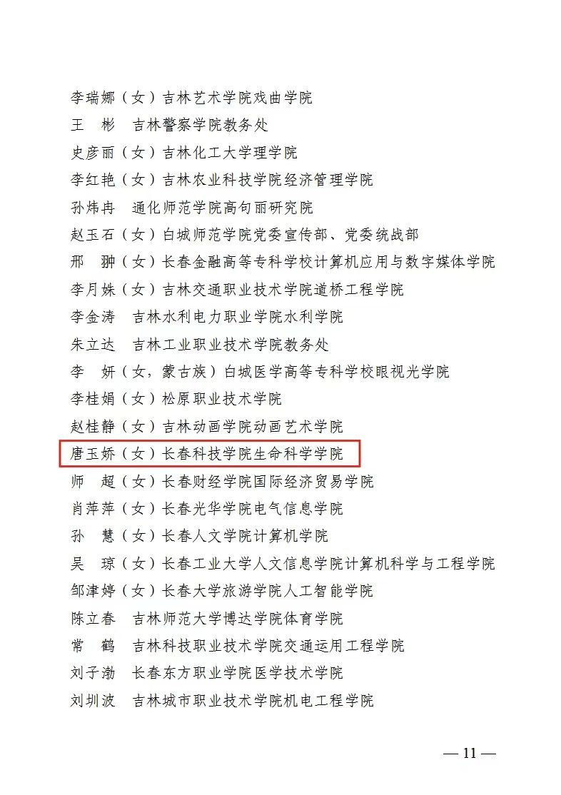 学院及师生个人屡传捷报,荣获多项集体与个人荣誉。学院相继被评为本科教育教学审核评估、就业、考研工作先进单位,以及 2024 年先进集体、2024 年度精神文明创建工作先进单位。教师队伍成果丰硕:唐玉娇教授荣获 “吉林省优秀教师”、2025 年长科 “科研、学科建设突出贡献奖”“长科好人・最美教师暨黄大年式好老师” 等省、校级荣誉;陈新源、杨添泽被评为 2025 年中国国际大学生创新大赛 “优秀指导教师”;孙永杰教授获得校级 “优秀党务工作者”“师德标兵” 称号,获批第二批吉林省企业 “科创专员”;刘艳教授获得校党委 “师德标兵” 称号,刘芳、邢艳凤、张莹被评为校级 “优秀共产党员”,张洋洋、王奕衡被评为 2024 年度校级精神文明创建工作先进个人,充分展现了学院深耕育人、笃实治学的良好风貌。