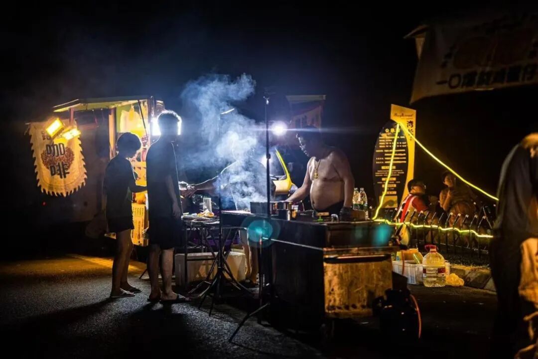 烧烤摊烟雾漫开,摊主赤膊翻烤得熟稔,裹着食客笑谈与炭火噼啪,织就城市夜最鲜活的烟火韵律。