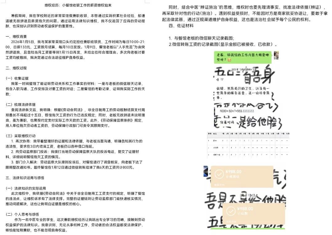 经过层层筛选,共有10份优秀作品正式出炉。这些作品以真实案例为蓝本,生动展现了当代青年学子面对权益问题时的清醒认知与行动智慧。它们既记录了维权过程中的曲折与不易,也传递了“懂法、守法、用法”的重要理念,兼具思想性与感染力。此刻,让我们共同聚焦这些优秀作品,聆听其中的思考与力量。