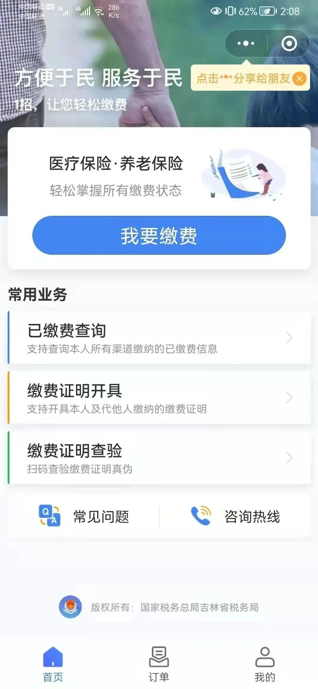 2.进入小程序后,划至下方点击吉林税务社保缴费。