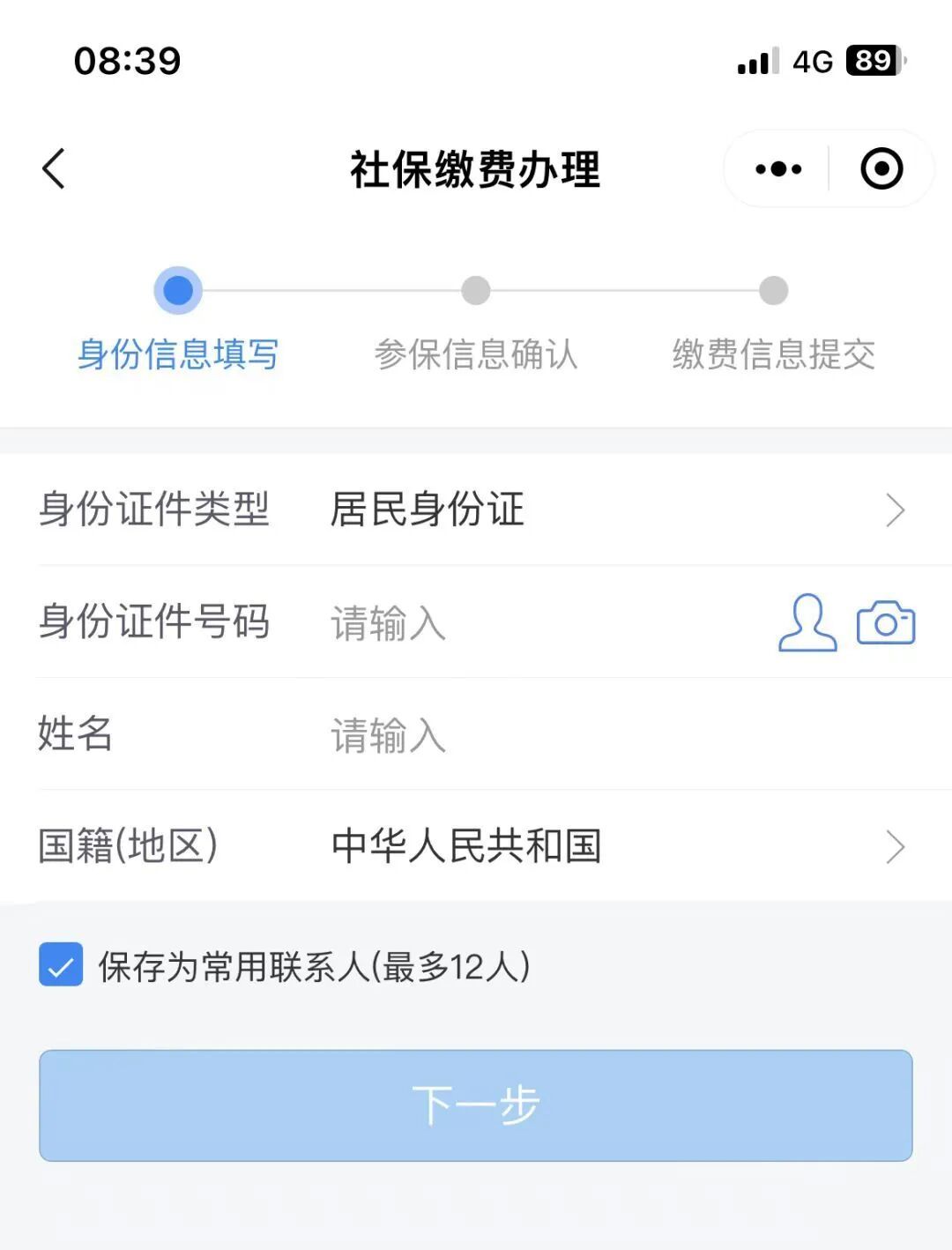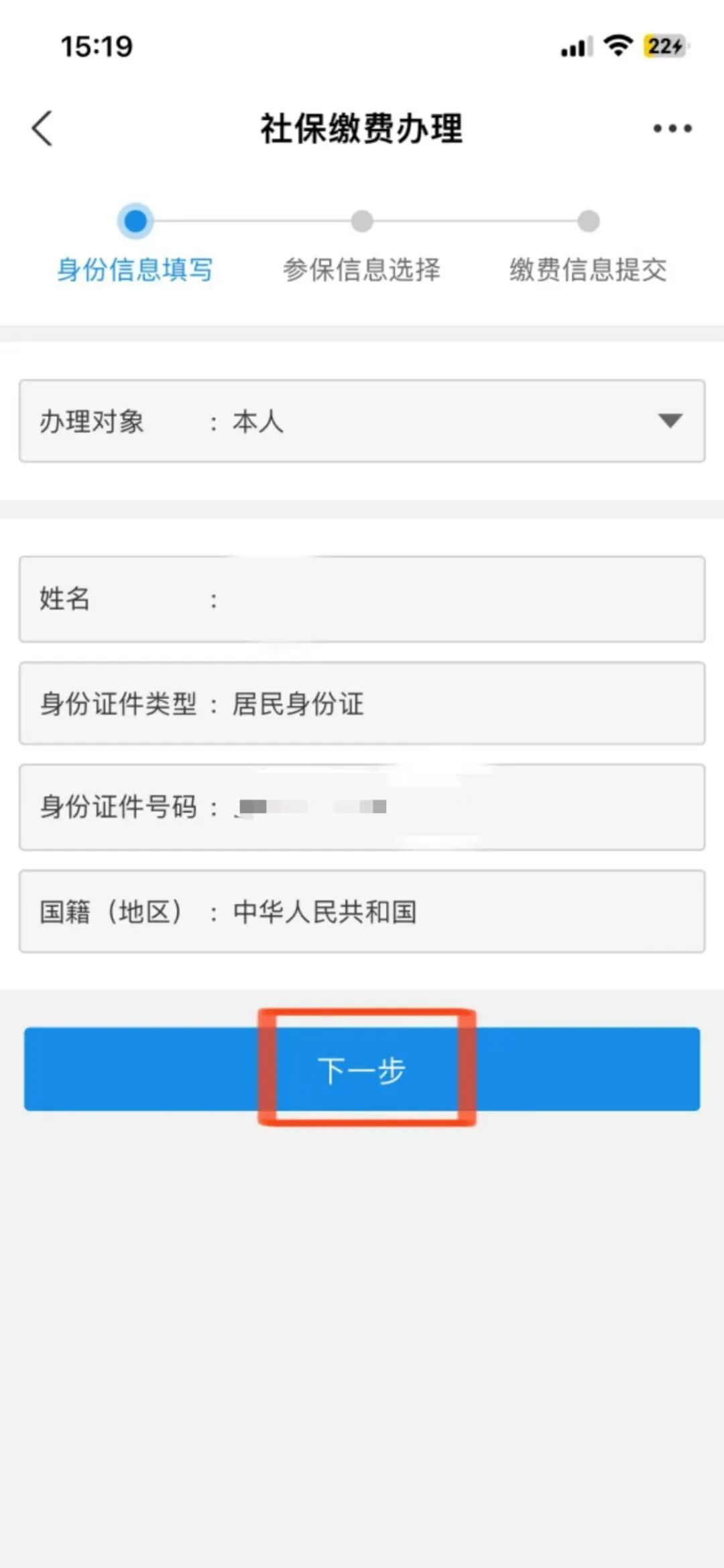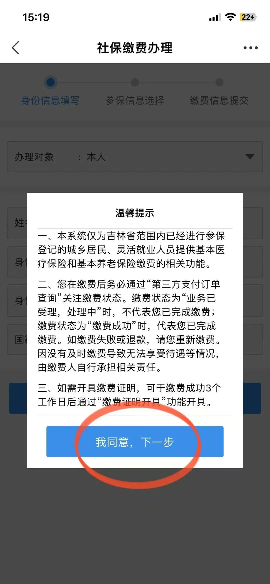 4.进入界面后,按照界面提示,准确填写身份信息,进行参保信息选择,最后提交缴费信息。
