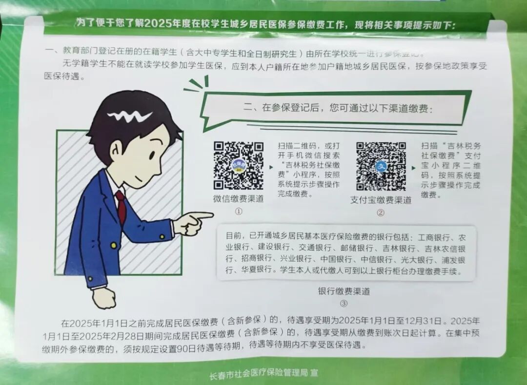 根据《关于做好2025年度城乡居民基本医疗保险参保缴费工作的通知》(吉医保联〔2024〕22号)要求,我校将有序开展医保相关工作,现在带领同学们一一了解医保使用的具体内容。