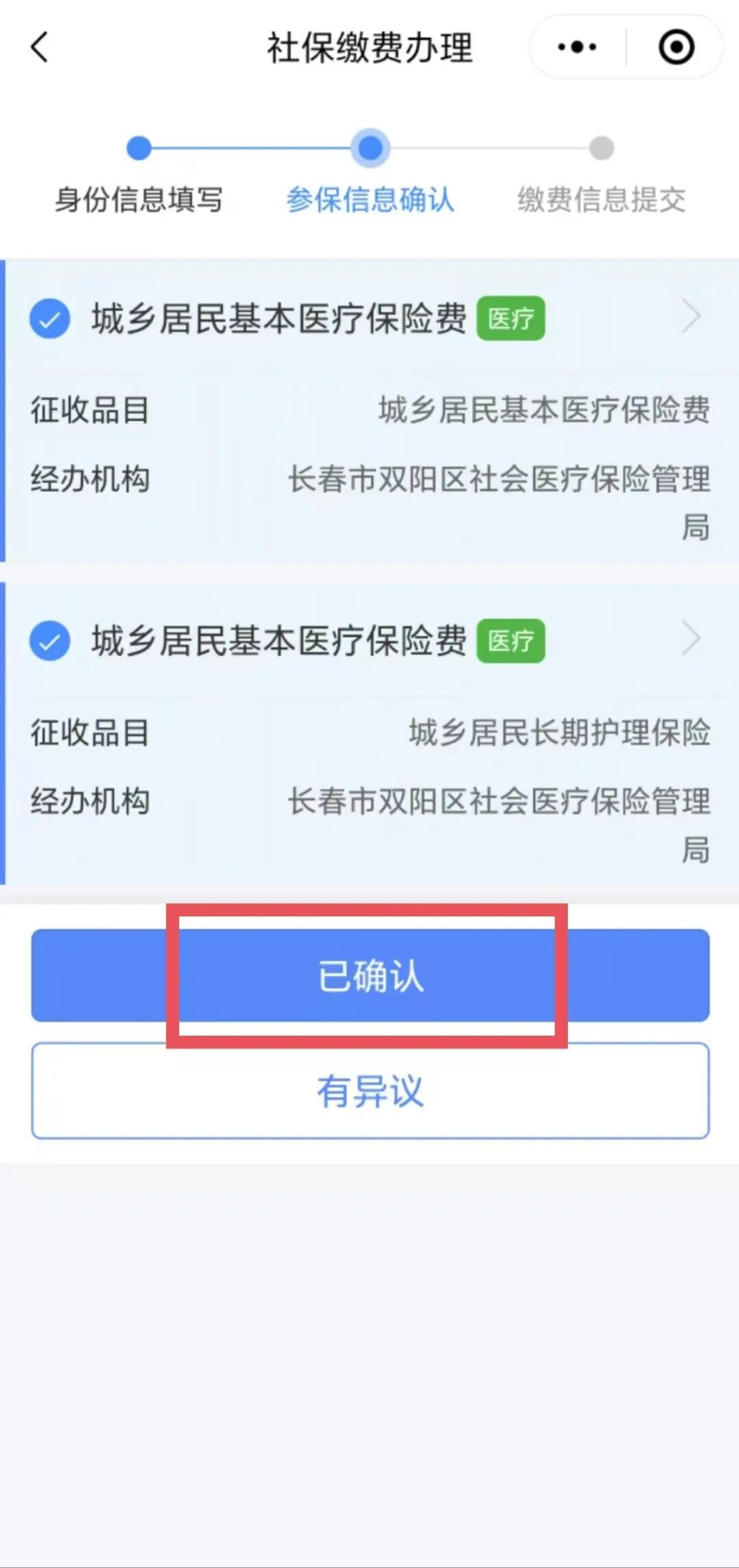 3.在我校参保后缴费的,显示“长春市双阳区社会医疗保险管理局”(可以缴费)。如果不是此项显示,显示哪里则需要跟相关部门确认无误后再进行缴费。