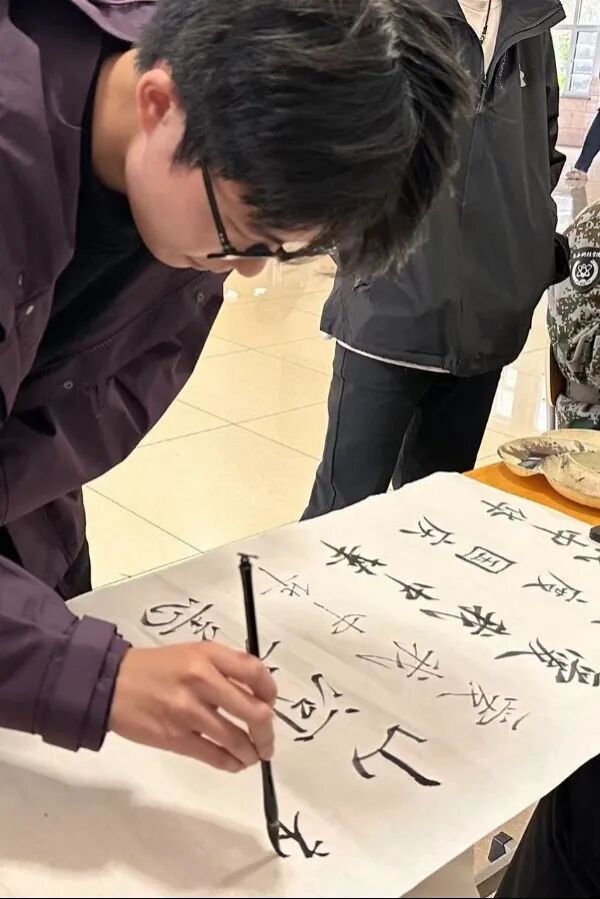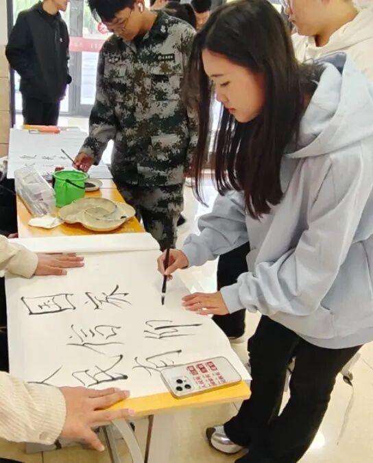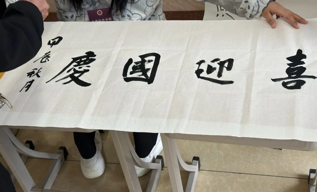 为庆祝祖国诞辰75周年,加强我校学子爱国热情,深化爱国主义教育。“一站式”学生社区举办了“喜迎国庆,爱我中华”特别活动。作为新时代的学生,我们不仅感受到了祖国的繁荣与强大,更通过这次活动表达了对祖国深深的爱。同学们用毛笔蘸墨,书写下一个个饱含情感的汉字,每一笔每一画都蕴含着对祖国的祝福与敬意。看着字迹在宣纸上徐徐展开,我们心中充满了自豪。
