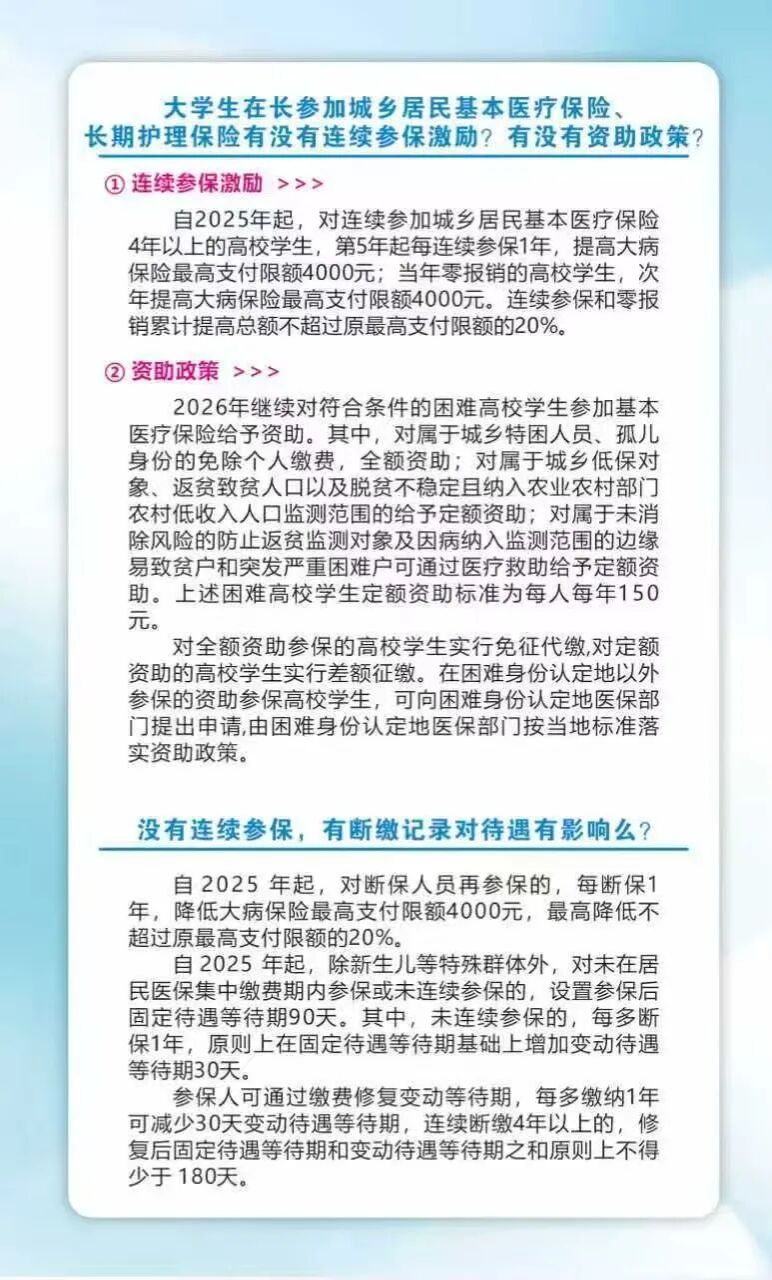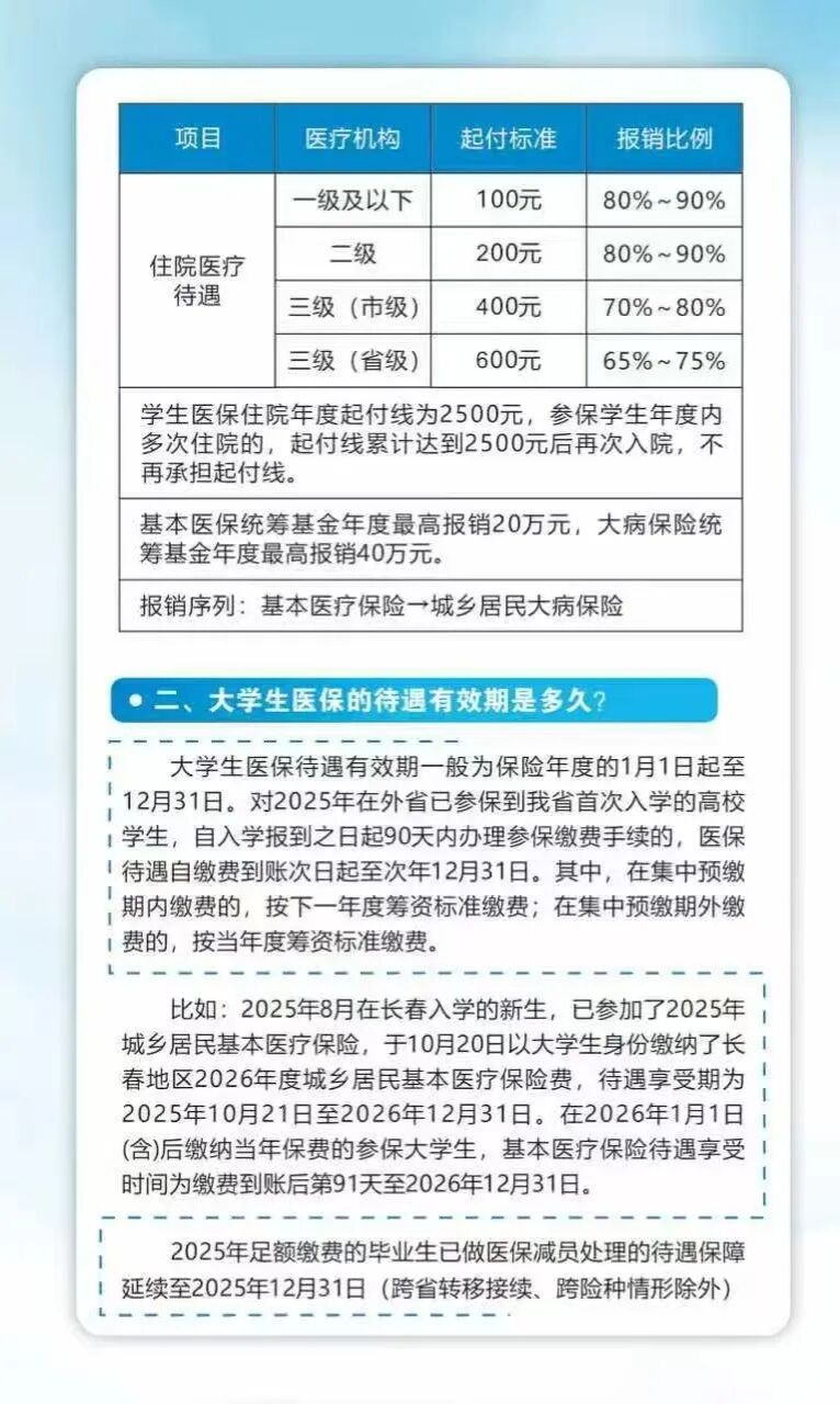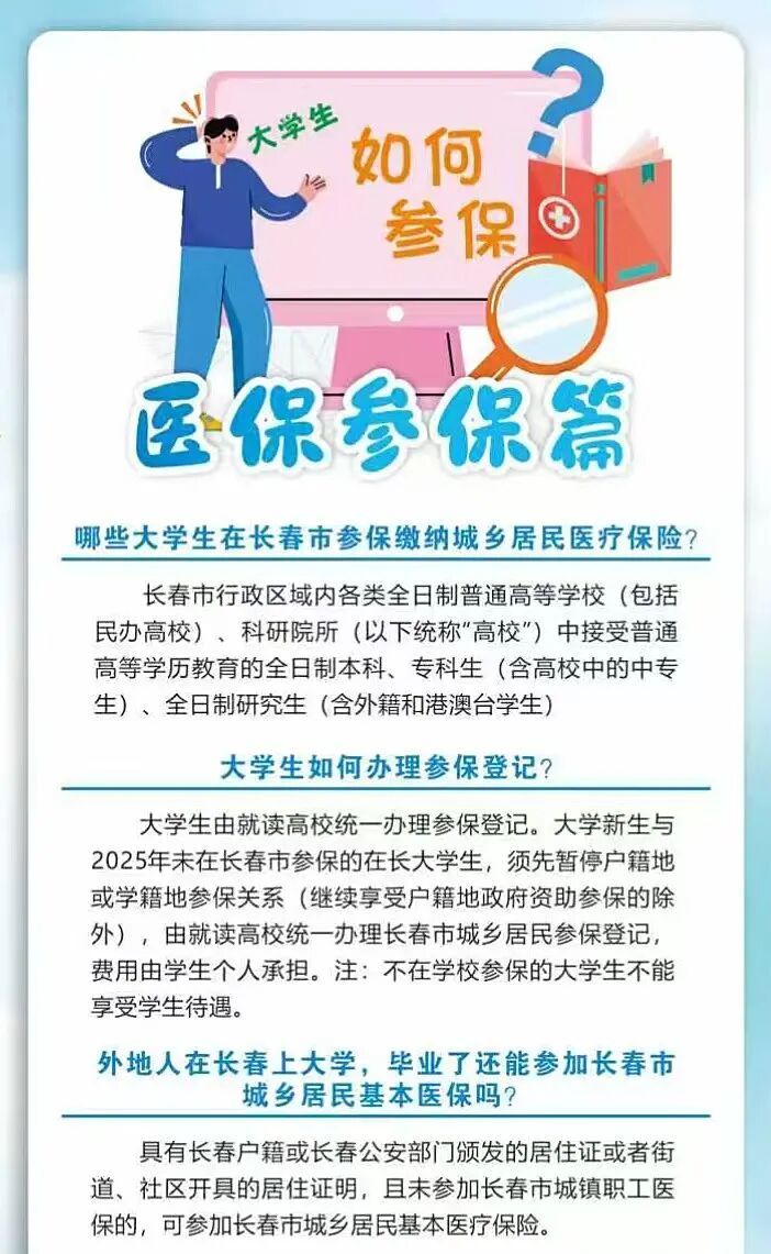 同学们,医保是守护我们健康的重要保障!2026年医保新变化来袭,下面小编将为大家详细介绍长春大学生医保的参保、待遇、医疗费报销渠道、缴费、医保电子凭证激活与应用、医保直付等方面内容。快快收藏这份指南吧~