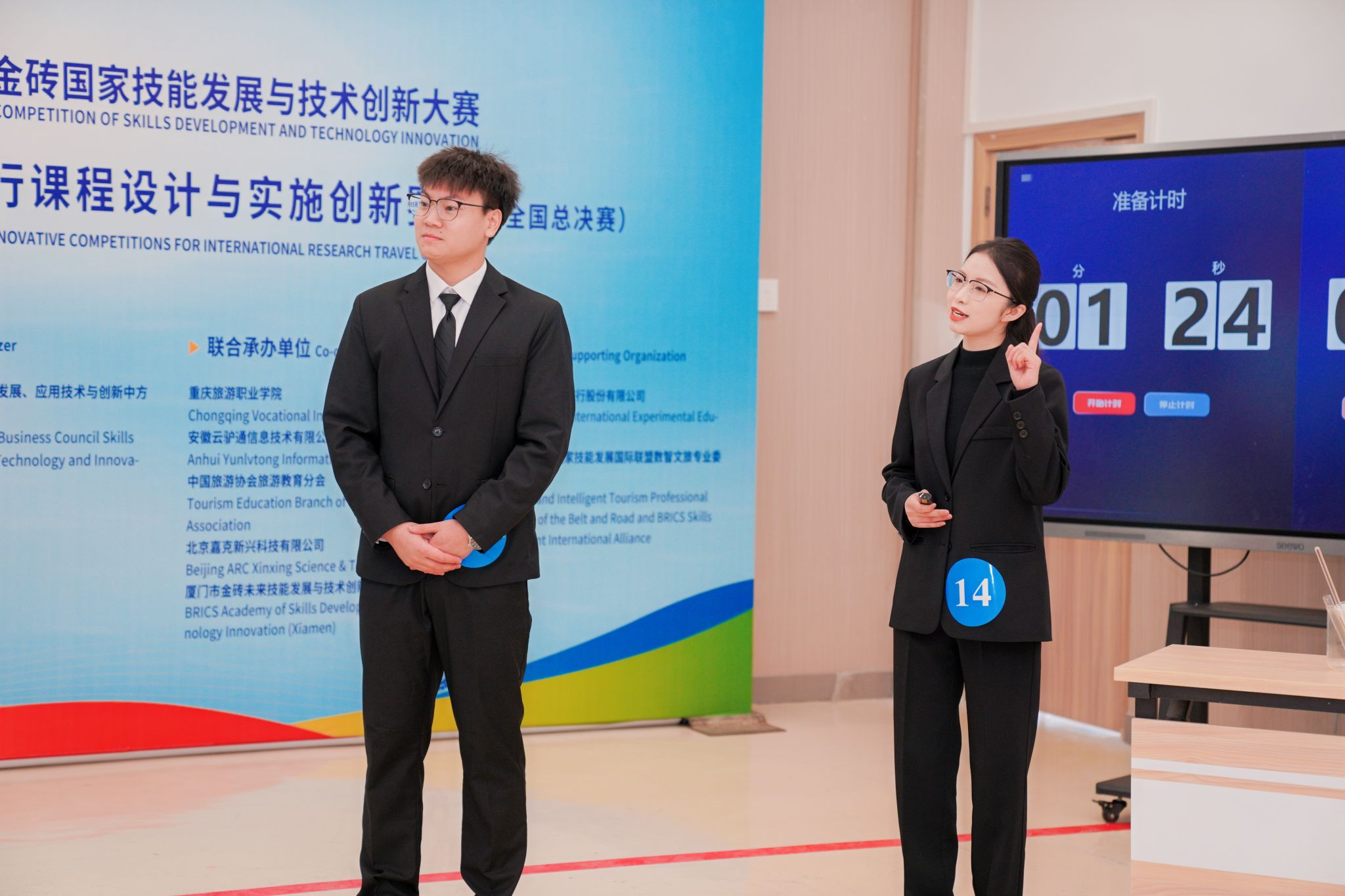 本次大赛由教育部中外人文交流中心、一带一路暨金砖国家技能发展国际联盟、中国发明协会主办,金砖国家技能发展与技术创新大赛组委会承办,聚焦研学旅行领域的课程设计与实施创新,吸引了全国高校122支优秀队伍参赛。赛事通过“研学理论测试”“研学产品设计”与“课程模拟展示”三模块全方位考察团队的研学旅行课程设计能力、文化传播能力与实践创新能力。