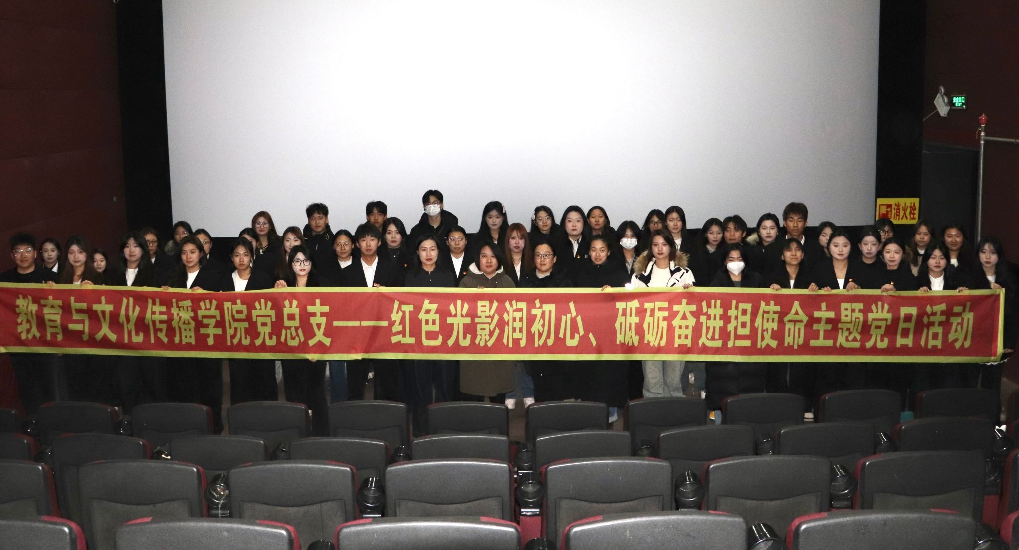 为厚植爱国主义情怀,传承红色精神血脉,进一步激发师生党员与积极分子的家国担当与民族使命感,2025年12月4日中午,教育与文化传播学院党总支组织开展“红色光影润初心,砥砺奋进担使命”主题党日活动,组织学院教师党员、学生党员及入党积极分子赴双阳电影娱乐城,共同观看历史纪实影片《731》,通过沉浸式影像教育引导师生铭记民族历史、汲取精神力量,在光影洗礼中坚定理想信念、强化使命担当。