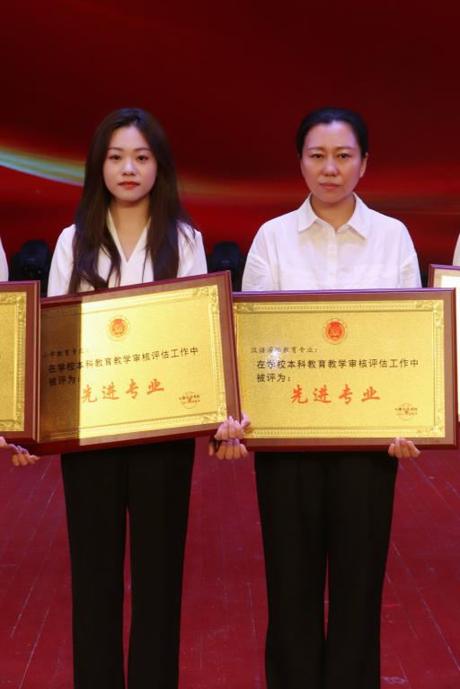 2025年9月10日,学院获评审核评估工作“先进集体”,汉语国际教育专业、小学教育专业获评审核评估工作“先进专业(教研室)”。学院始终坚持以评促建、评建融合,构建多层次评建组织体系,分阶段推进自查整改,系统梳理制度体系、夯实教学档案,形成闭环式质量提升机制。依托OBE理念优化人才培养模式,强化师资建设与教学资源供给,深化产教协同与课程思政创新,学院在教育教学内涵式发展方面成效显著,高标准完成审核评估各项任务,彰显了高水平应用型学院的建设实力。