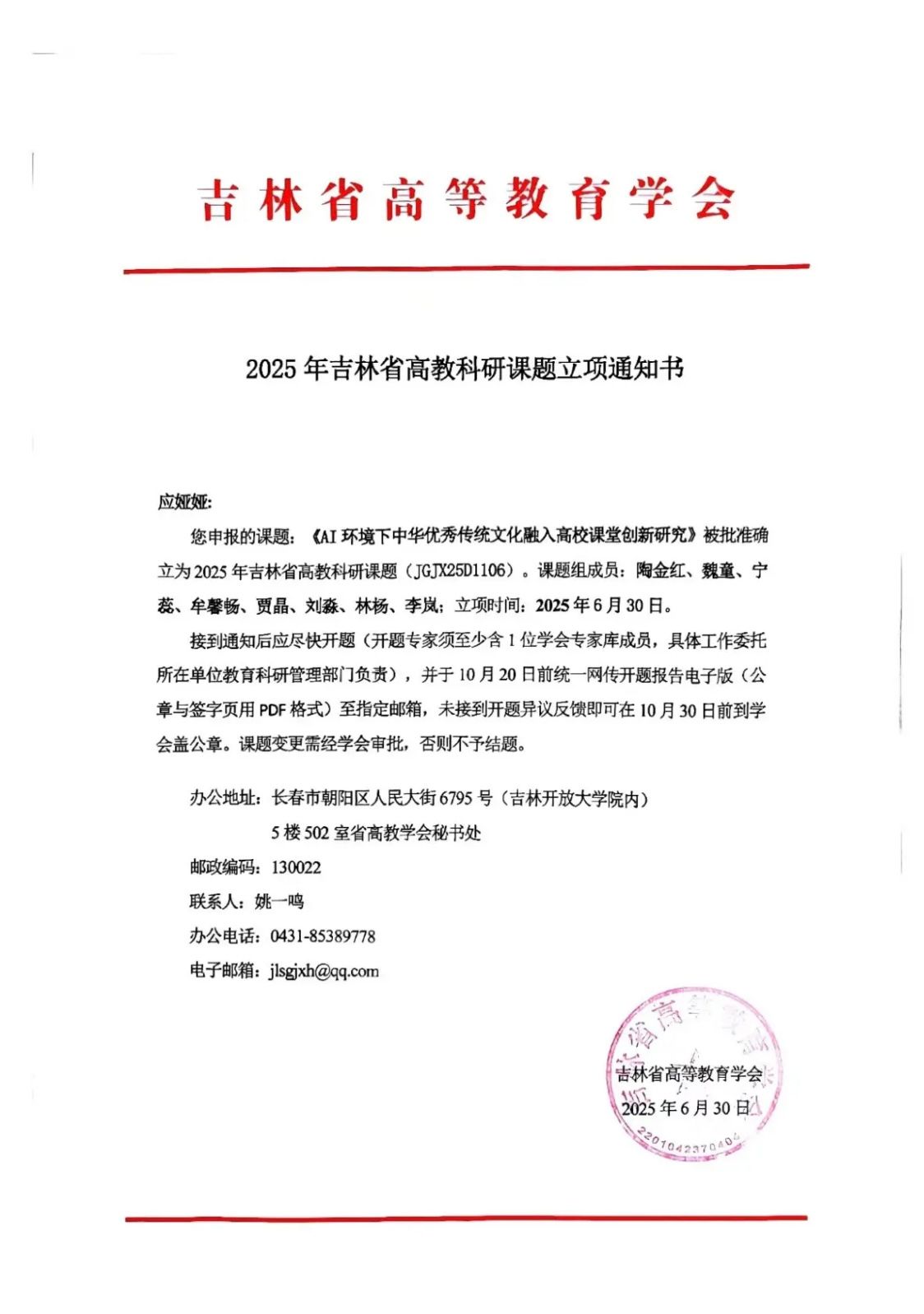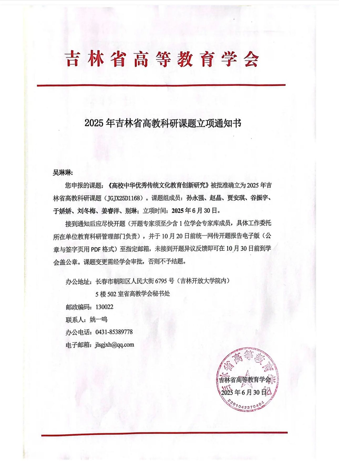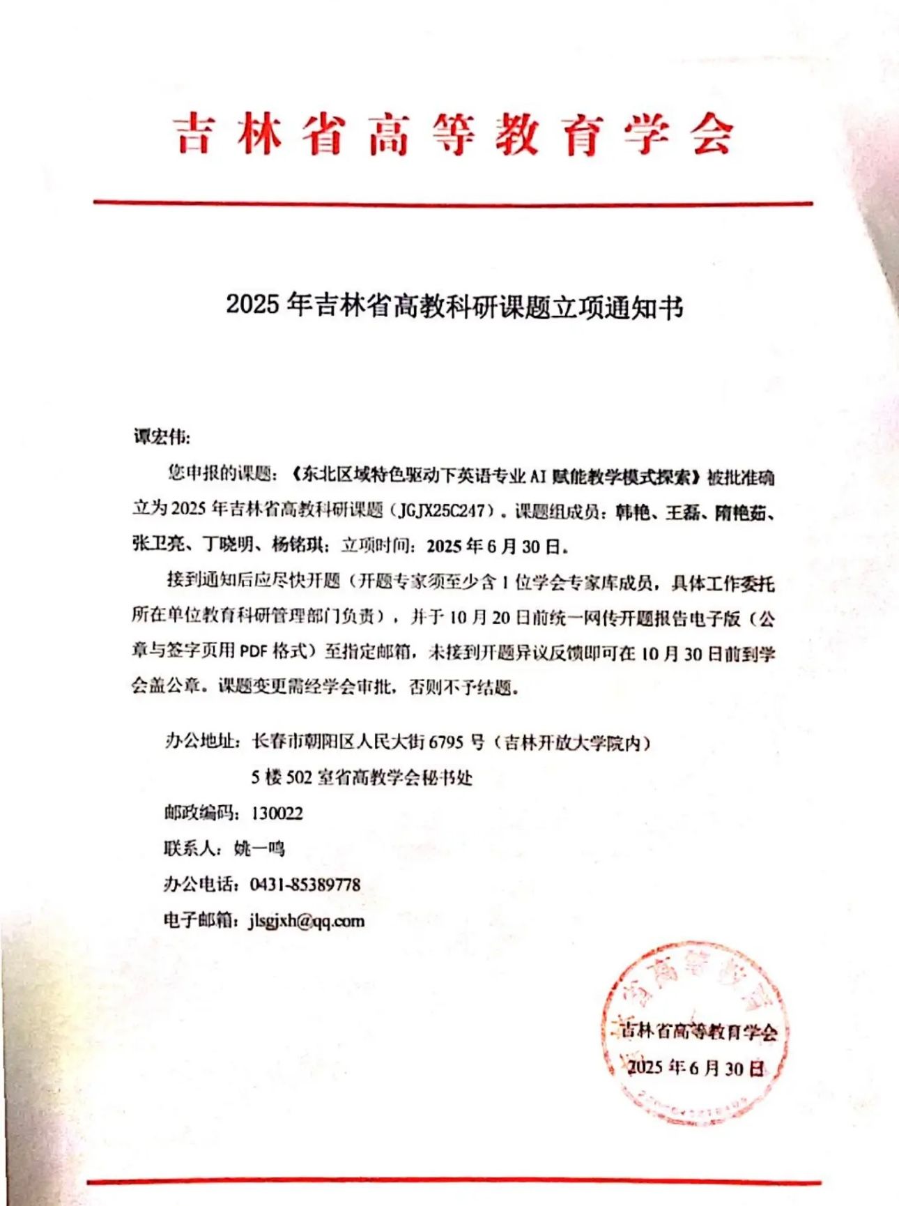 2025年10月,《大学英语1》入选吉林省第三批本科高校省级课程思政示范课程。该课程由吴哲教授牵头,组建跨学科教学团队,创新构建“语言载体+文化内核”融合教学模式,在系统传授英语语法与阅读技能的基础上,深度融入“中国脱贫攻坚故事”“非遗文化海外传播”等思政教育素材,为外语类课程思政建设提供了可借鉴的实践范式。