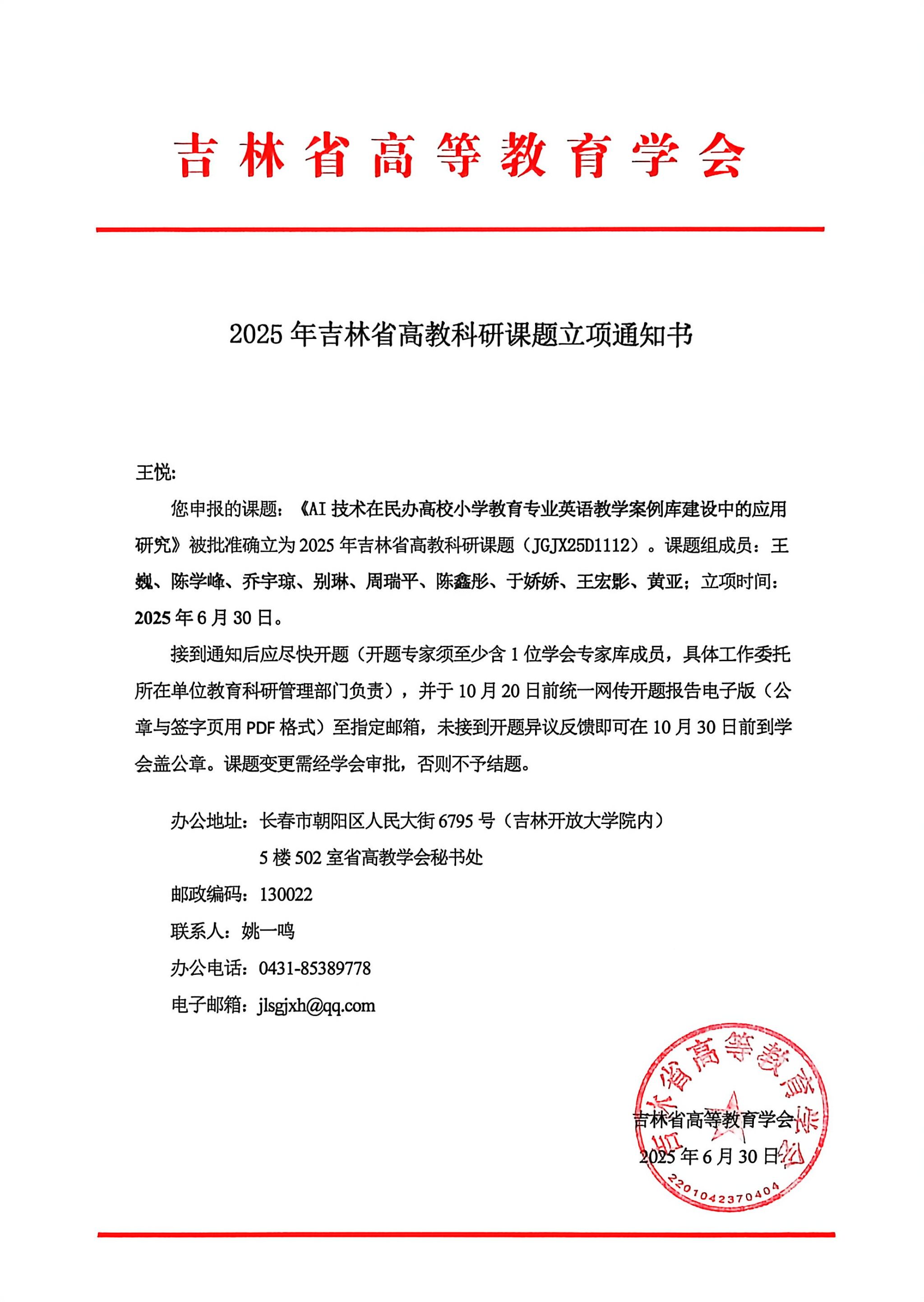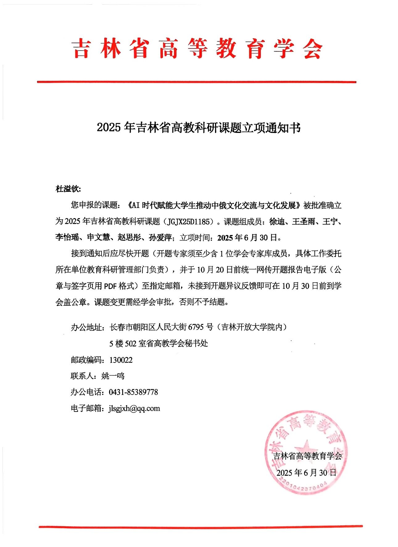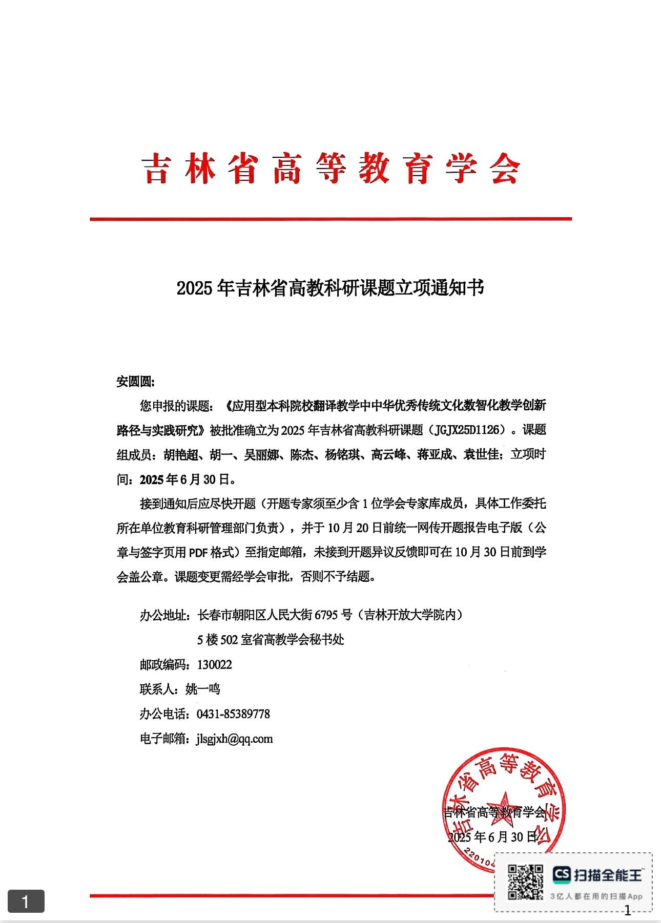 2025年10月,《大学英语1》入选吉林省第三批本科高校省级课程思政示范课程。该课程由吴哲教授牵头,组建跨学科教学团队,创新构建“语言载体+文化内核”融合教学模式,在系统传授英语语法与阅读技能的基础上,深度融入“中国脱贫攻坚故事”“非遗文化海外传播”等思政教育素材,为外语类课程思政建设提供了可借鉴的实践范式。