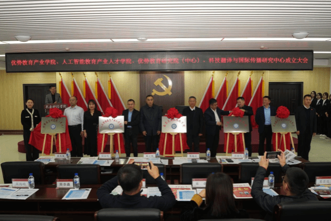 2025年11月20日,学校正式批准设立“三院一中心”,即优势教育产业学院、人工智能教育产业人才学院、优势教育研究院(中心)及科技翻译与国际传播研究中心。该架构以深化产教融合为核心导向,构建了集人才培养、产业服务、科学研究于一体的协同创新平台。标志着学院在产教融合与优势教育方面取得重大突破,为创新“新文科”培养模式、提升人才培养板质量构建了更加充分的平台高地。