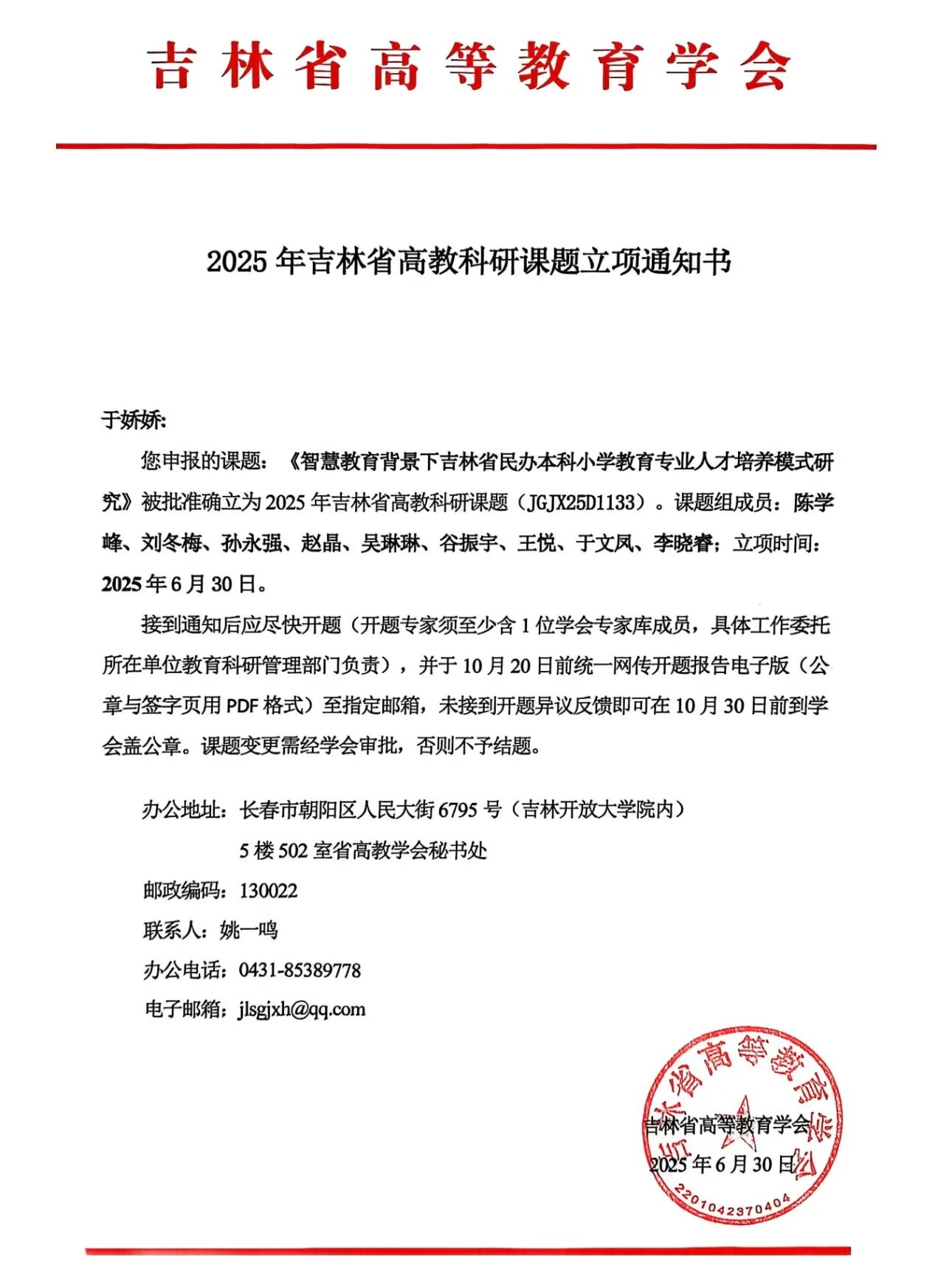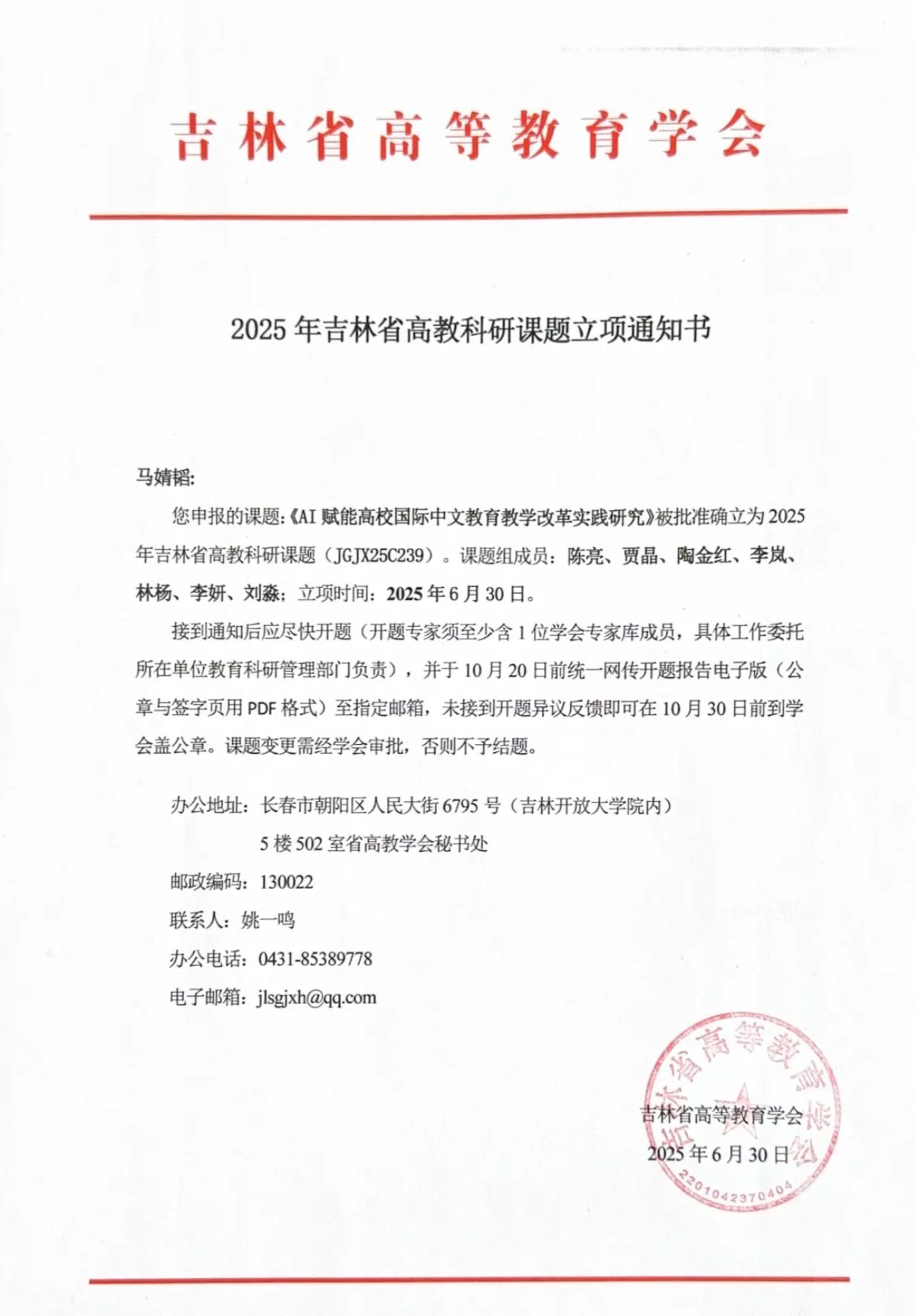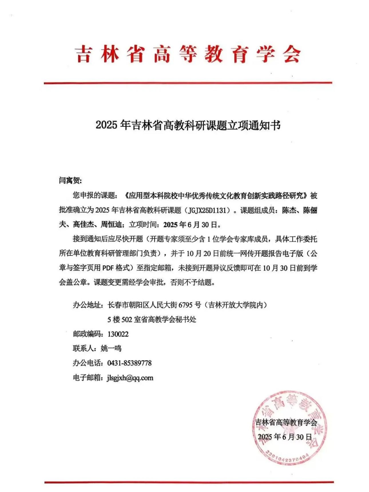 2025年3月17日,学院网络与新媒体、汉语国际教育双专业成功入选吉林省特色高水平专业(群)建设项目。上述专业深度聚焦“乡村振兴与农业现代化—农村电商直播”核心领域。此举不仅是学院主动对标国家重大战略、精准对接区域经济发展脉搏的关键举措,更标志着学院在构建服务乡村振兴人才培养高地与智力支撑体系上取得了实质性突破,提升了学院专业在服务国家战略大局和吉林省经济社会发展中的贡献度。