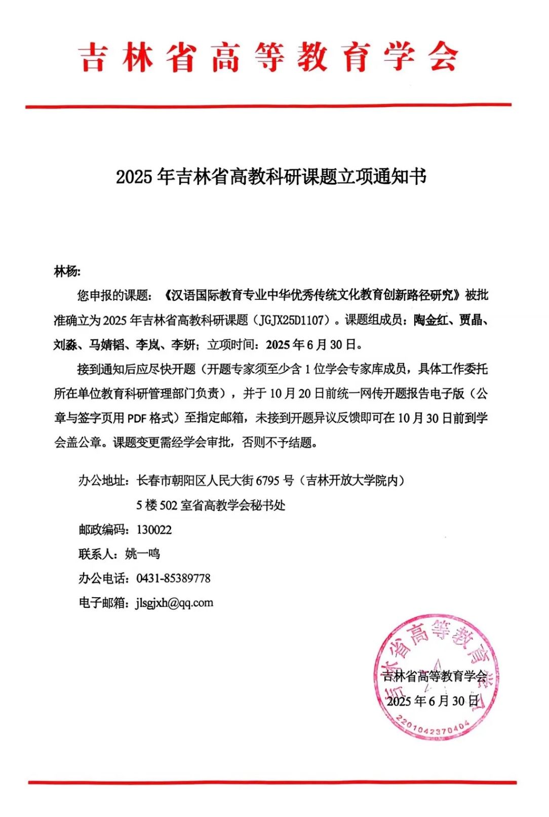 2025年3月17日,学院“参茸文化传播”学科群获批省级特色高水平学科群,确立了“参茸文化传播”学科在学校学科布局中的地位,构建了“产学研用”深度融合的创新生态,标志着学院学科建设由“综合发展”向“特色领先”的战略转型,实现了科研链与产业链的精准对接, 为参茸文化国际传播提供高质量实质载体,形成了特色鲜明的学科发展新格局。