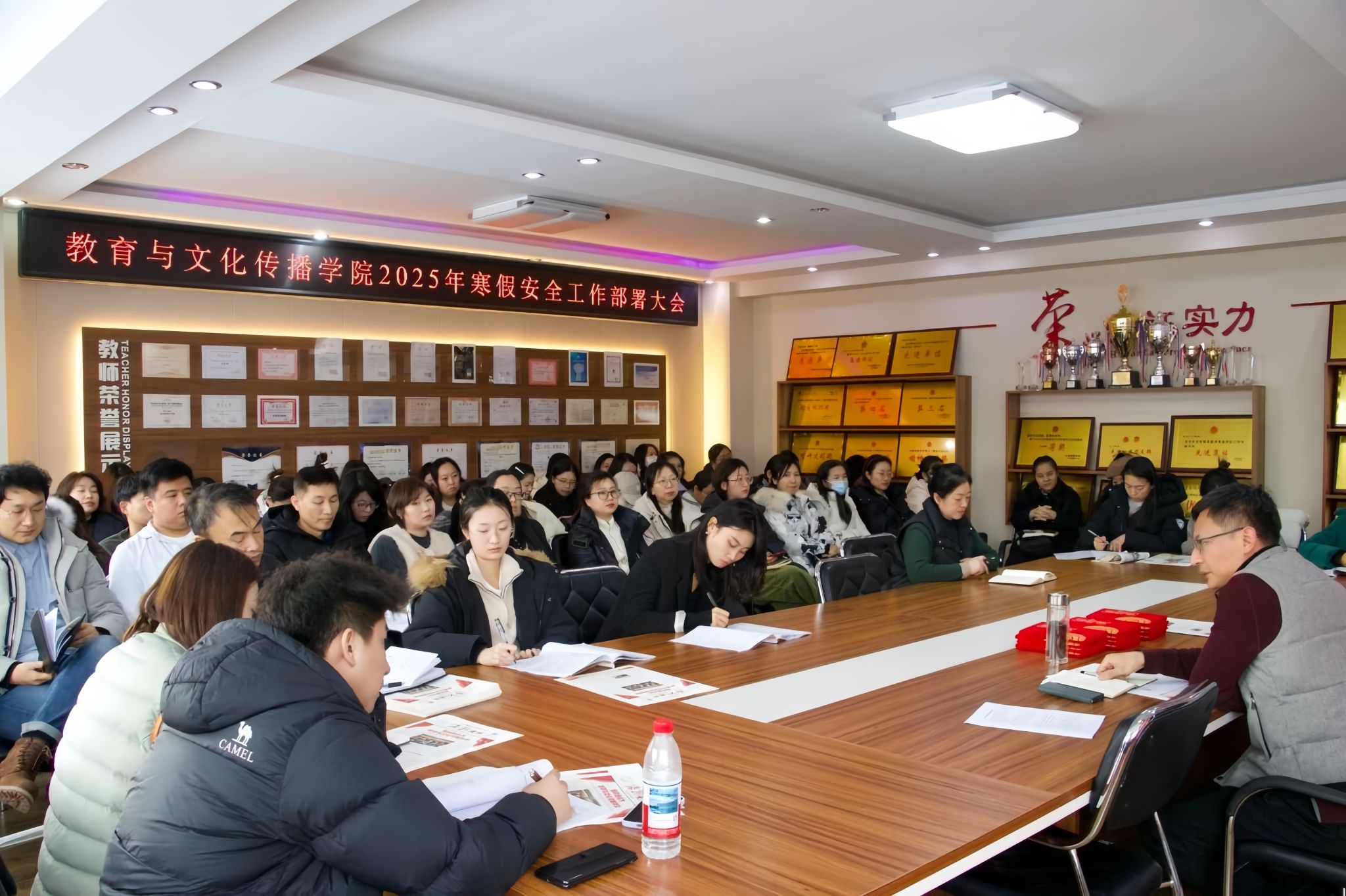 寒假将至,为筑牢校园安全防线,扎实做好假期安全管理,12月23日,教育与文化传播学院组织召开寒假安全工作部署会议,学院全体教职工参加会议。