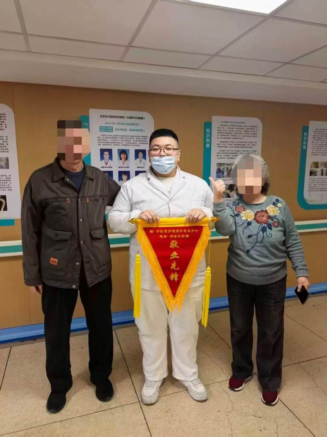 没过多久,患者和家属特意送来一面写着“敬业先锋,暖心守护”的锦旗。看着锦旗上的字样,说实话拿到手的第一时间更多的是不好意思,同时我也十分感动。于我而言,这只是尽了一名护士的本职工作。