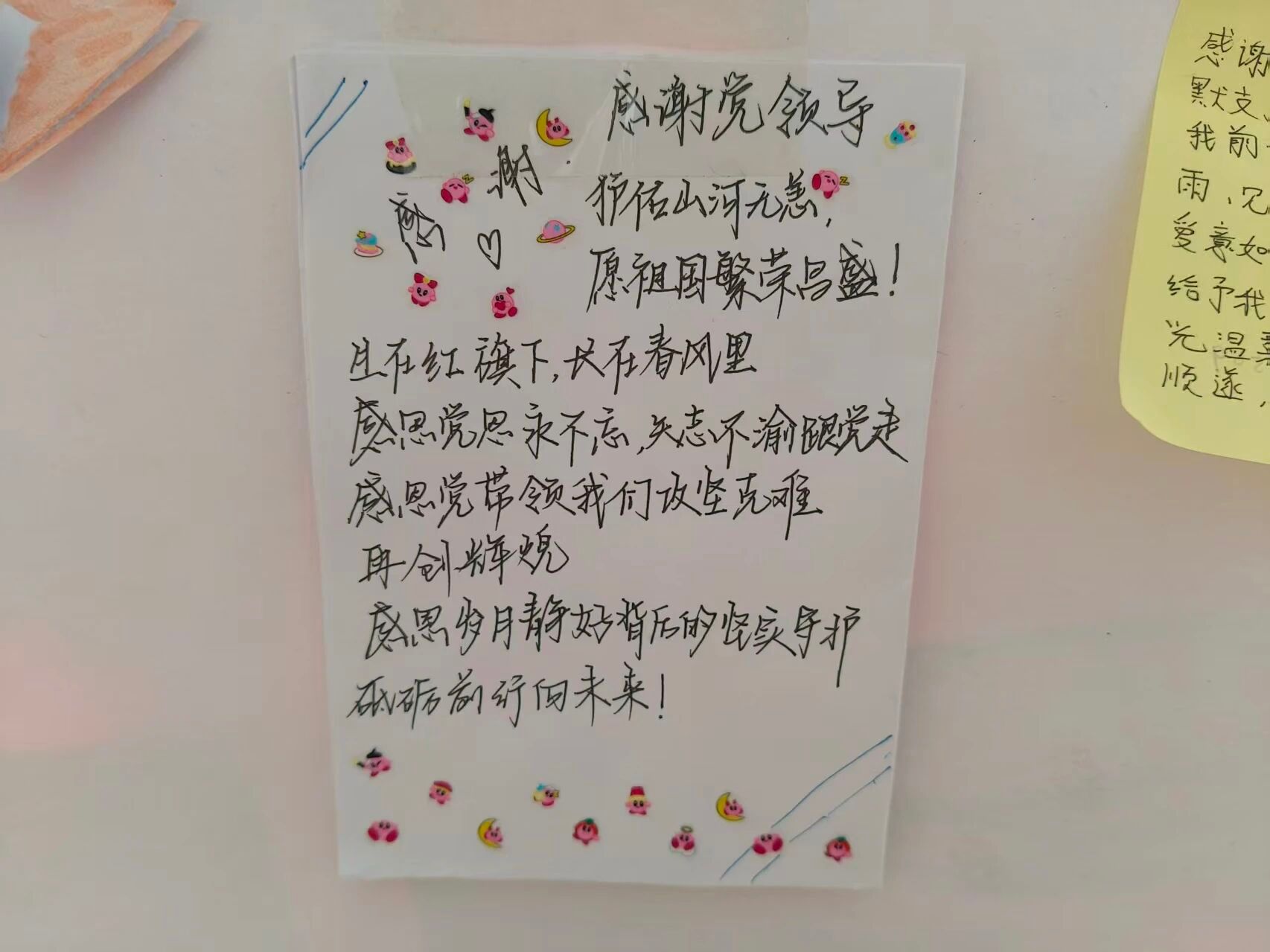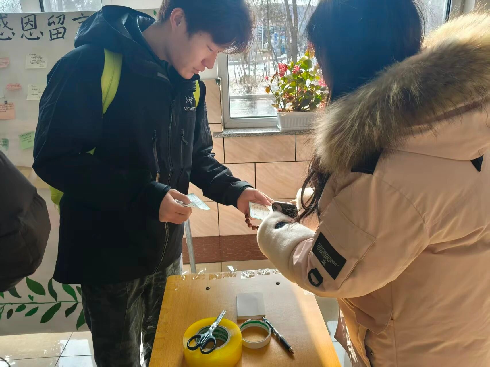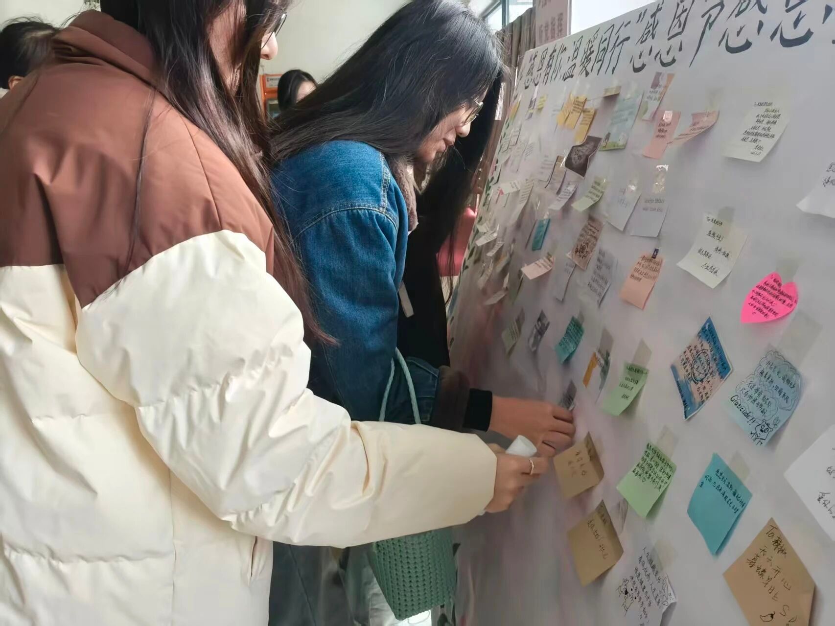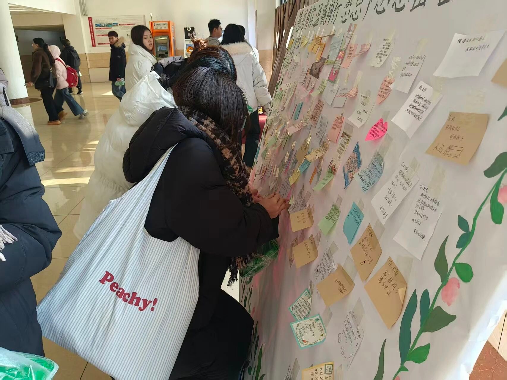 活动伊始,许多同学积极参与其中,他们手持便签,将心底沉淀的真挚祝福细细落笔,那些平日里未轻易言说的情愫,都化作了字里行间的温柔与热忱。一张张色彩各异的便签,像一颗颗盛满心意的星辰,在留言墙上渐渐汇聚成温暖的星河。