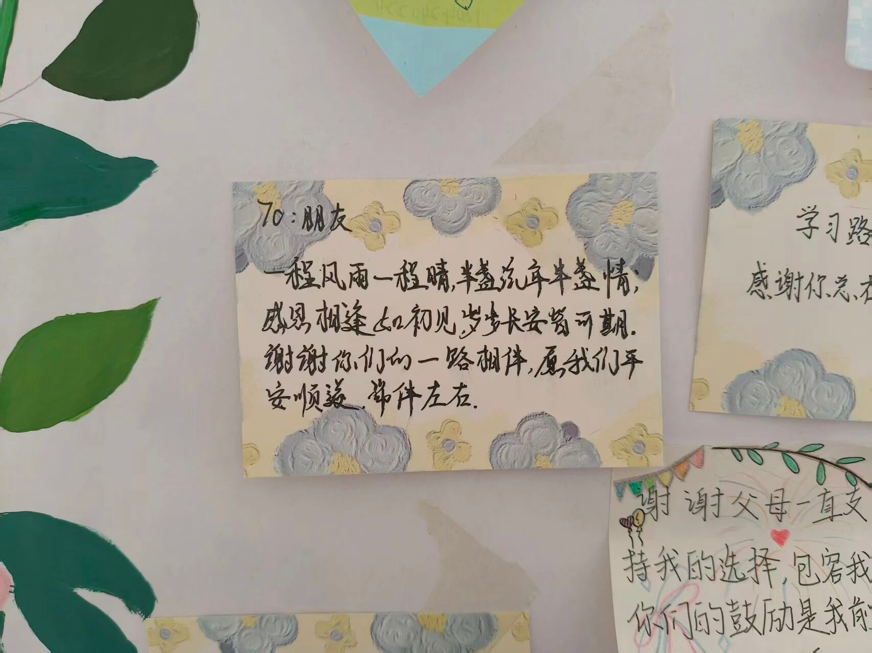 此次“感恩有你,温暖同行”活动圆满结束,以留言为纽带,打破同学们与同学家人陌生与疏离的关系,强化班级、校园的集体归属感,让“同行”的时光更具情感重量,在培育感恩意识与同理心的同时让温暖成为校园文化的底色,为校园时光留下具象化的情感印记,而这些留言也将会成为承载青春与感动的珍贵回忆。