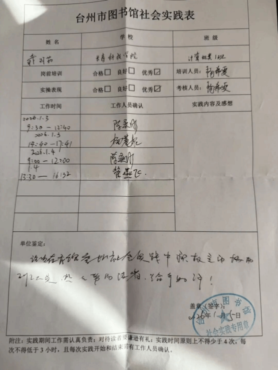 这段图书馆志愿之旅,虽没有惊天动地的壮举,却在平凡的小事中沉淀了我的心境,提升了我的能力。我学会了严谨细致,懂得了责任担当,也收获了温暖与感动。图书馆是传播知识的窗口,是滋养心灵的净土,能成为这里的志愿者,为读者服务、为书香助力,我倍感荣幸。