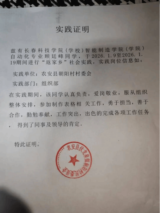 情暖寒岁添暖意,青春践行显担当!为扎根基层沃土,书写青春华章,智能制造学院积极响应号召,组织学子参与2026年寒假“返家乡”社会实践活动,躬身实践、传递温情、不负韶华。