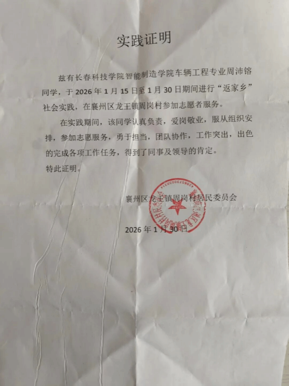 情暖寒岁添暖意,青春践行显担当!为扎根基层沃土,书写青春华章,智能制造学院积极响应号召,组织学子参与2026年寒假“返家乡”社会实践活动,躬身实践、传递温情、不负韶华。